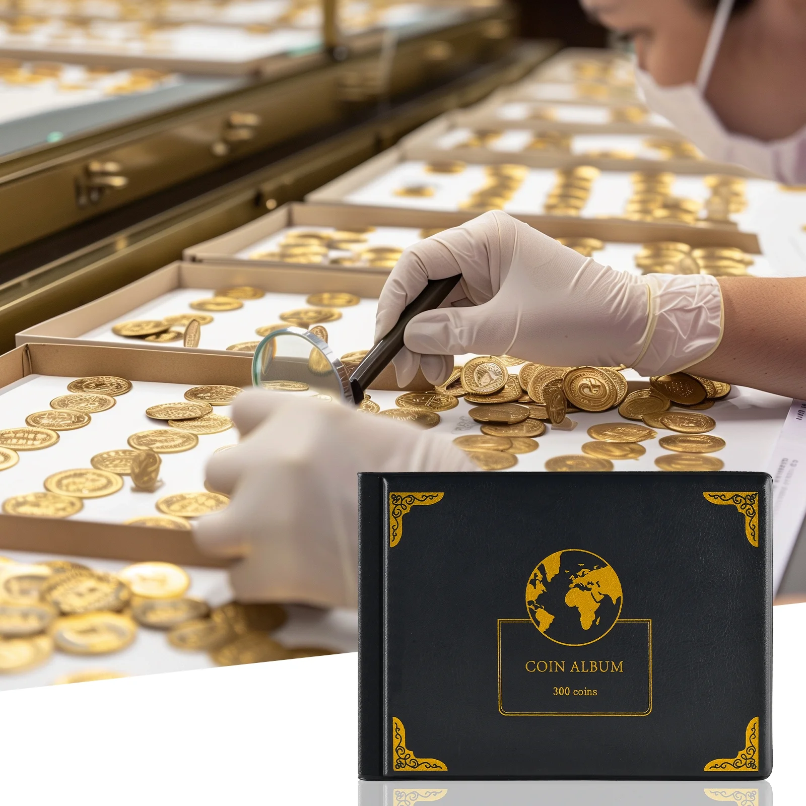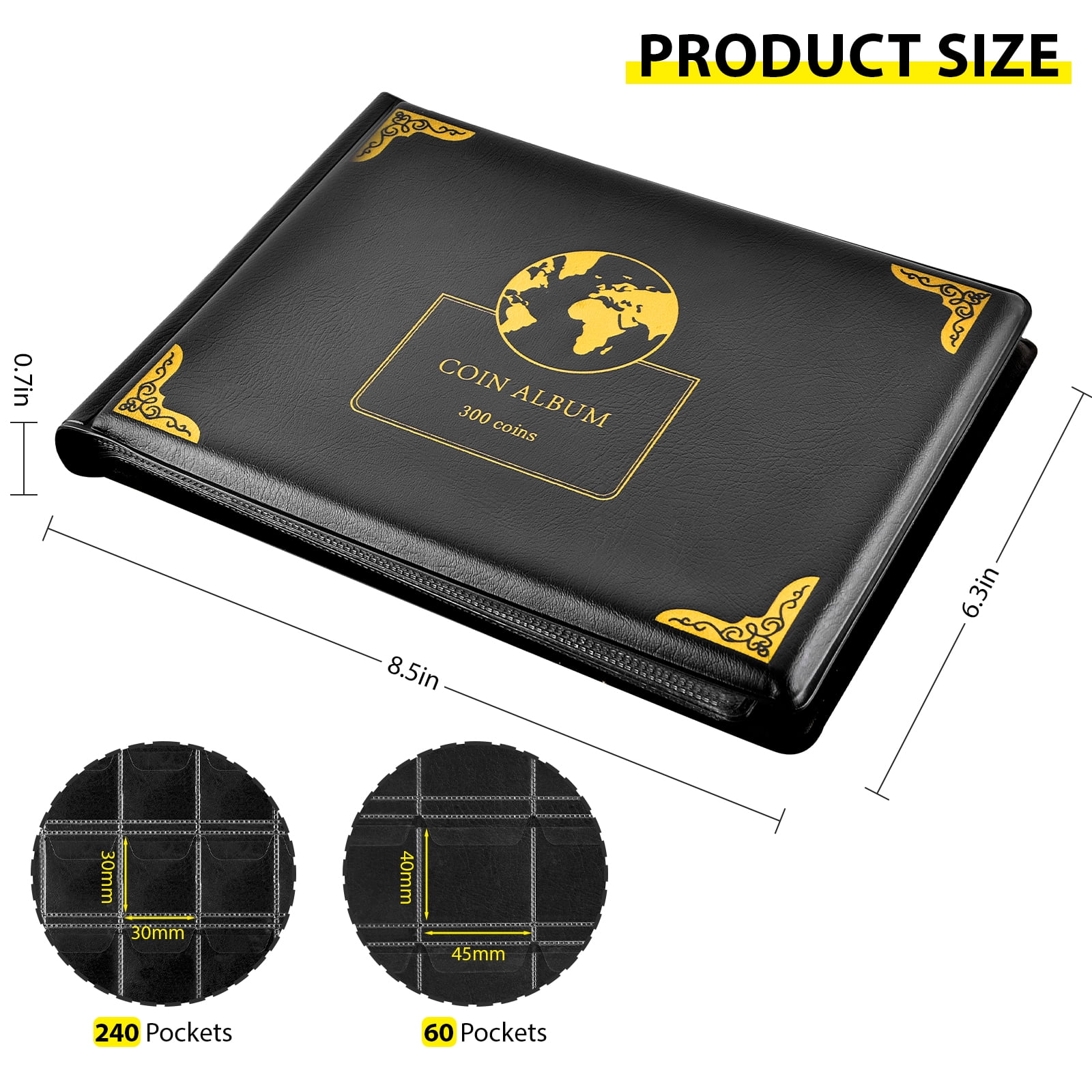 Coin Collection Supplies Holder Book for Collectors, 300 Pockets Coin Collection Organizer Storage Box Case Album for 20/25/ 27/30/ 38mm Coins- Black - Curated Treasures Market
