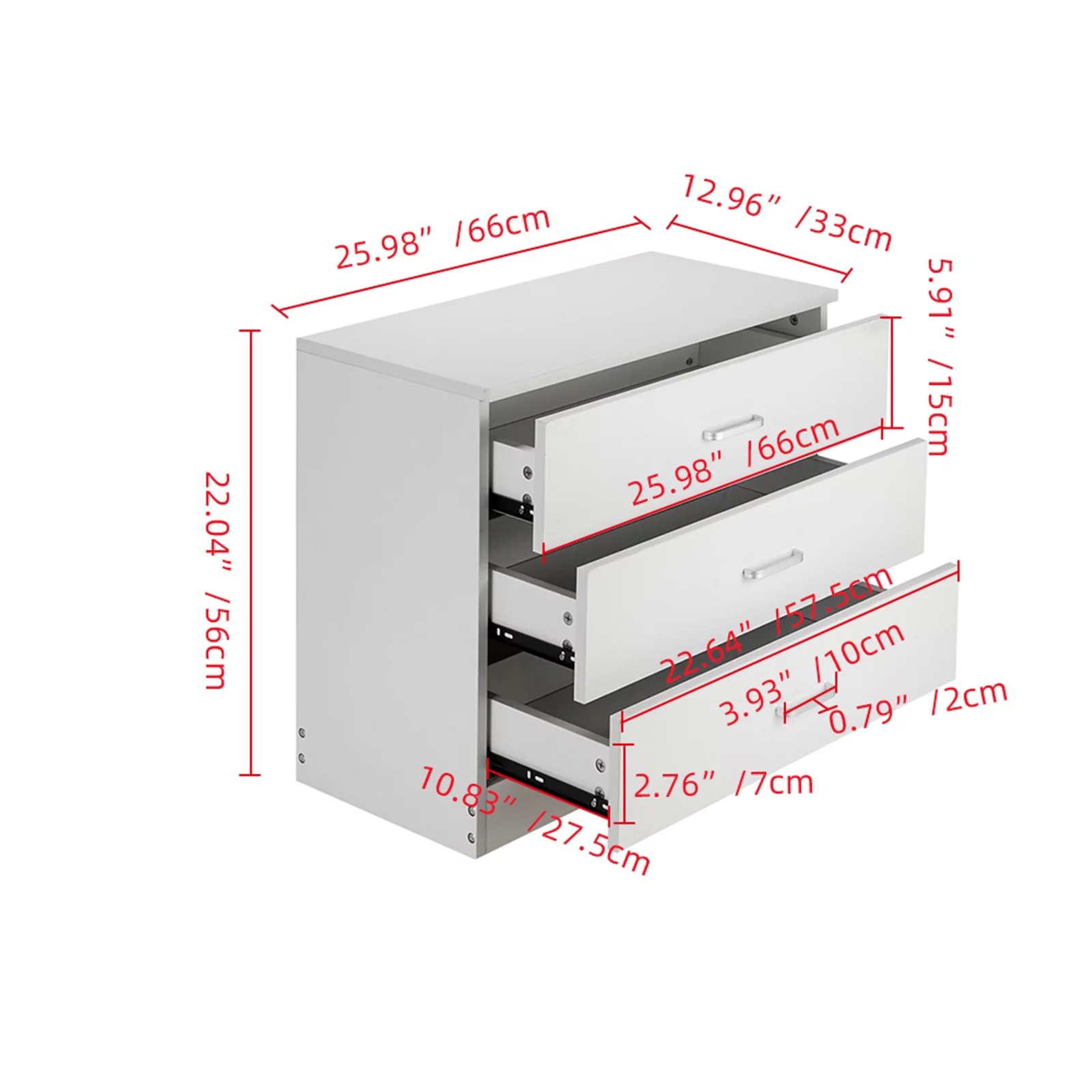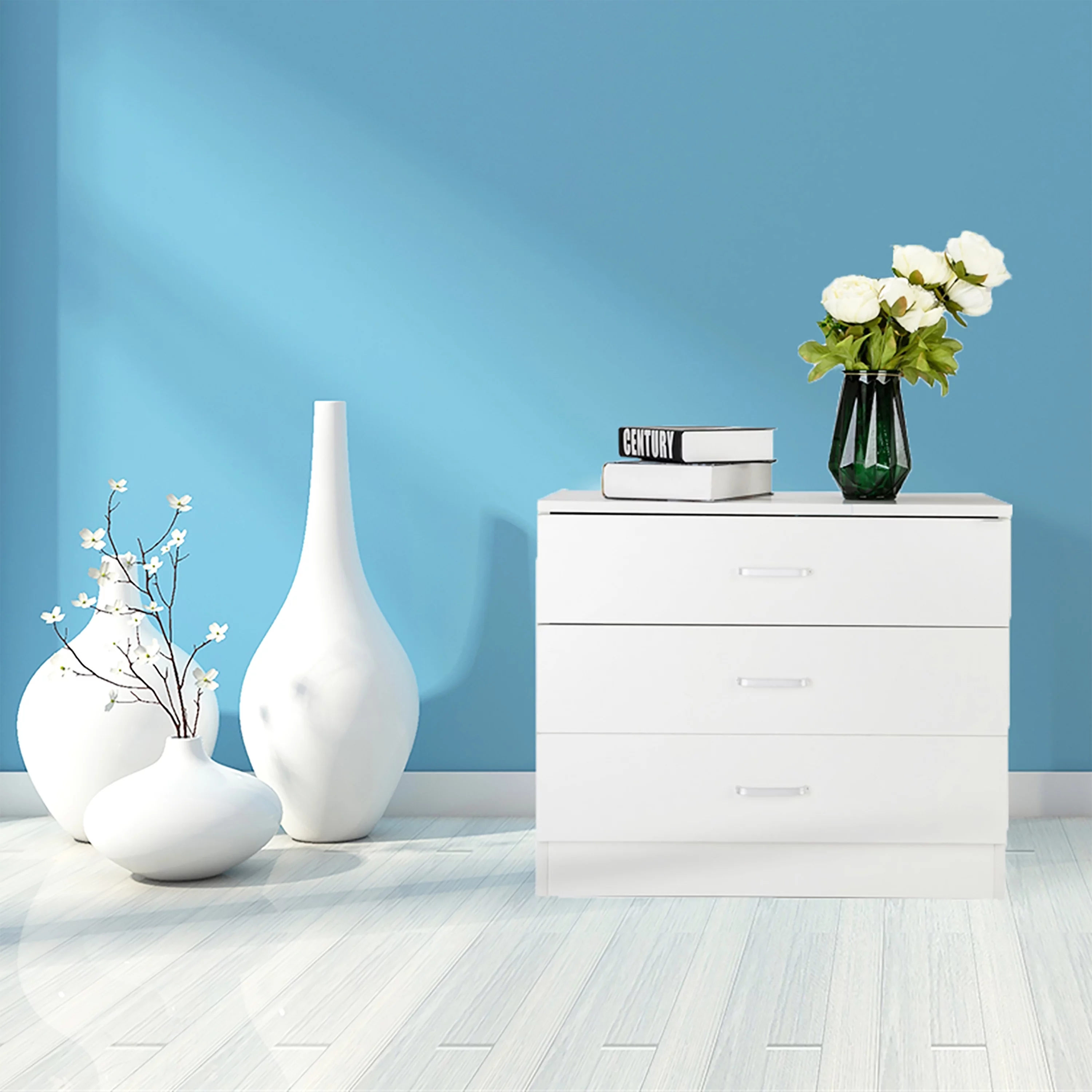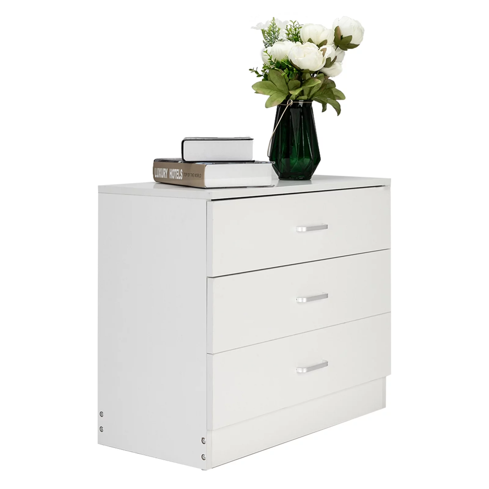 3-Drawer Dresser, White Chester Drawer Bedside Nightstand for Bedroom, Under Desk File Storage Cabinet for Office with Sliding Drawer Metal Handle - Curated Treasures Market