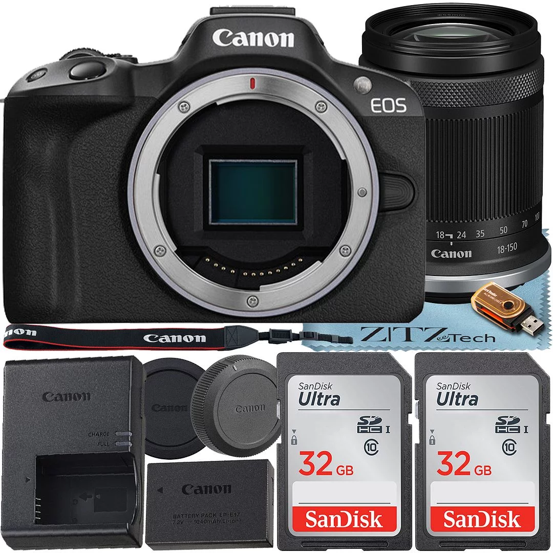 Canon EOS R50 Mirrorless Camera with RF-S 18-150mm f/3.5-6.3 IS STM Lens + 2 Pack SanDisk 32GB Memory Card + ZeeTech Accessory Bundle - Curated Treasures Market