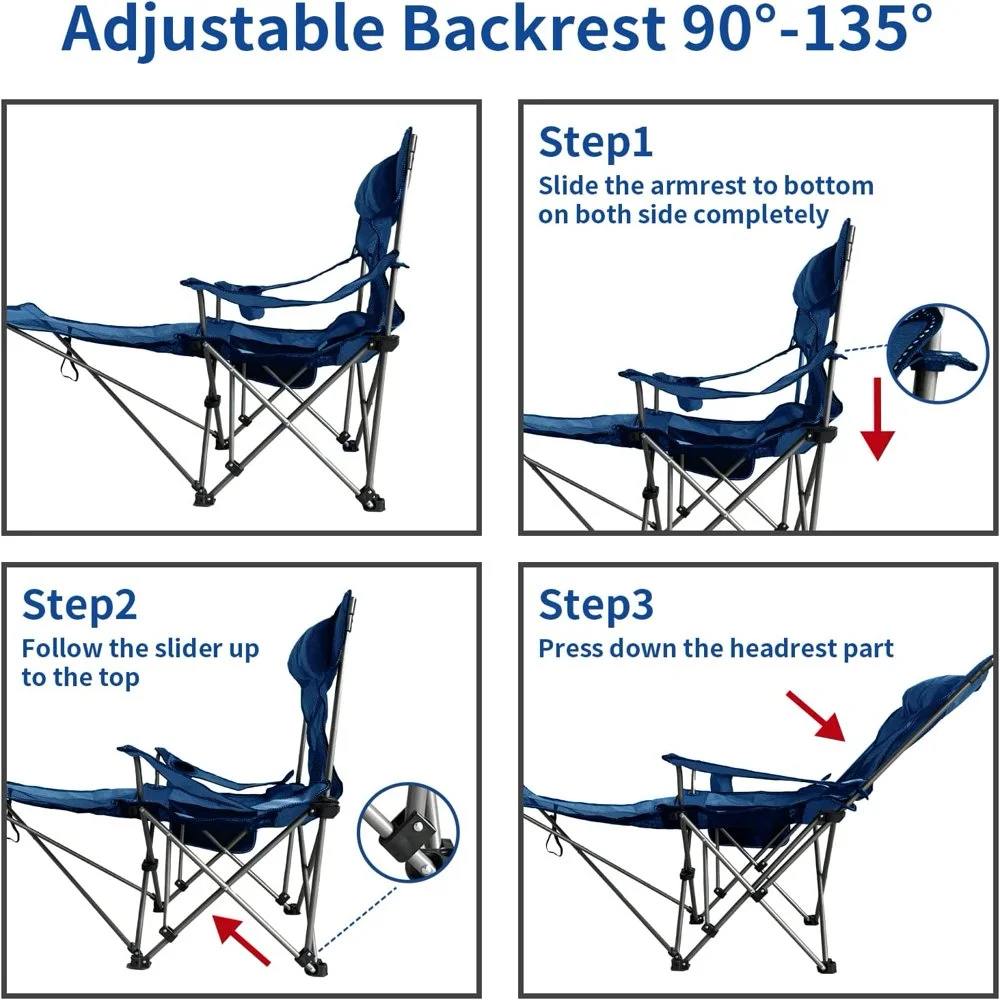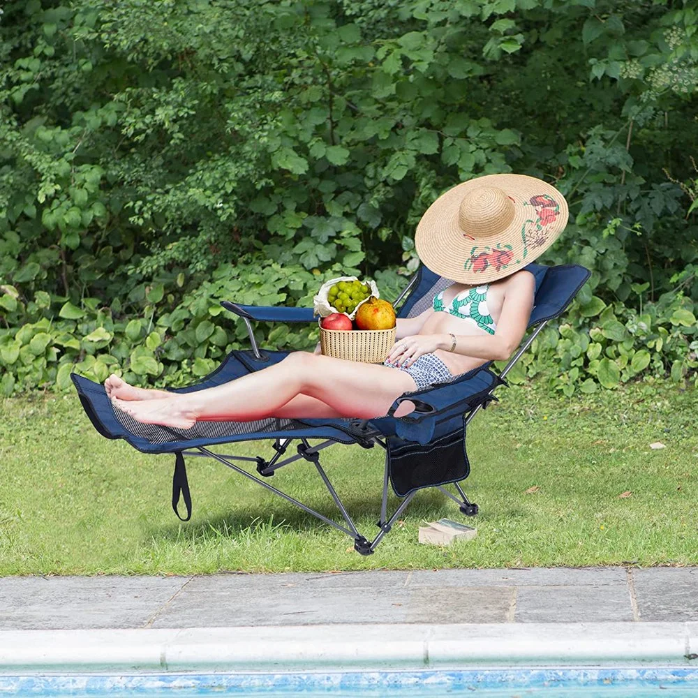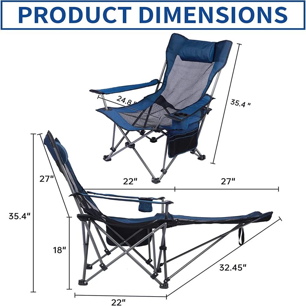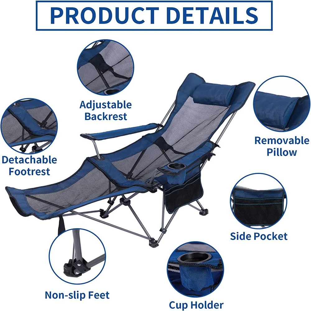 NEWCE Camping Lounge Chair Portable Reclining Camping Chair Folding Camping Chair with Footrest Headrest & Storage Bag Mesh Recliner with Backpack 330lbs Weight Capacity - Curated Treasures Market