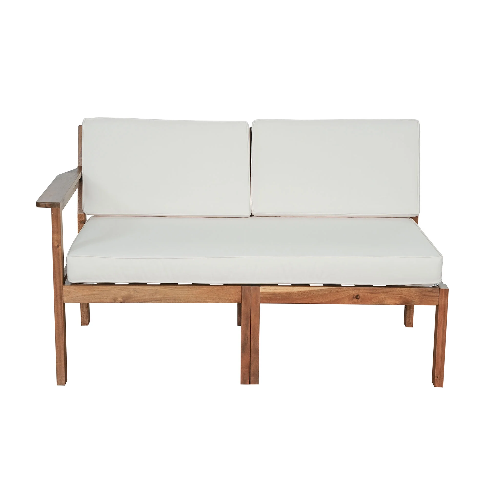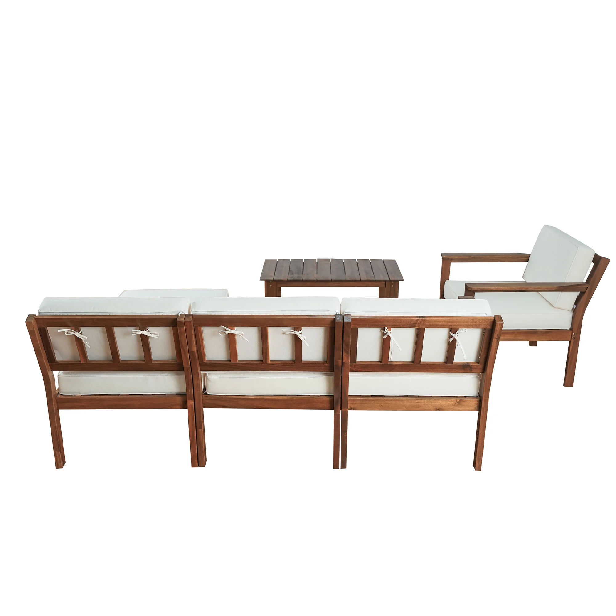 Putouzip 4-Piece Acacia Wood Patio Conversation Set, Outdoor Sectional L-Shaped Sofa with Detachable Cushions and Wood Coffee Table for Gardens Backyards, Beige - Curated Treasures Market