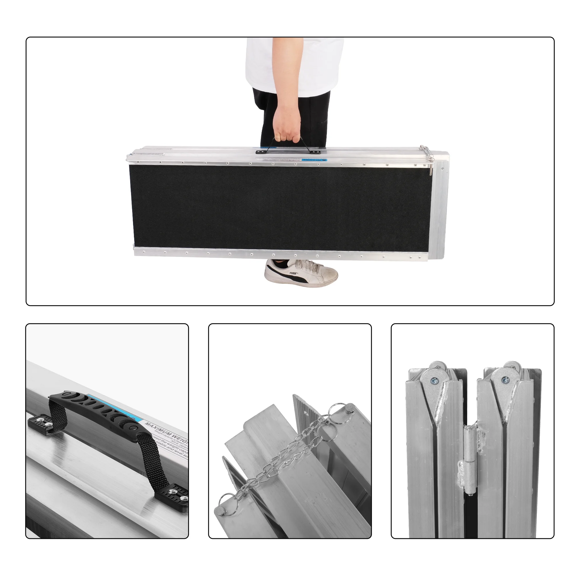 7FT Folding Aluminum Wheelchair Ramp with Handle, Utility Mobility Access Threshold Ramp, Ramp for Wheelchairs for Home, Doorways, Steps, Stairs, Holds up to 600 lbs - Curated Treasures Market