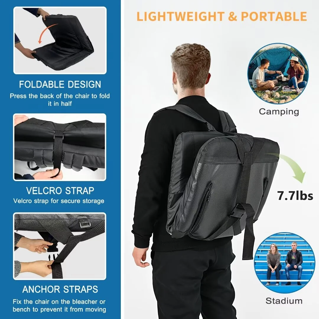 Docred 2-Pack Large Size Stadium Seat Chair for Bleacher ,Foldable with Padded Back Support,6 Reclining Positions,Black - Curated Treasures Market