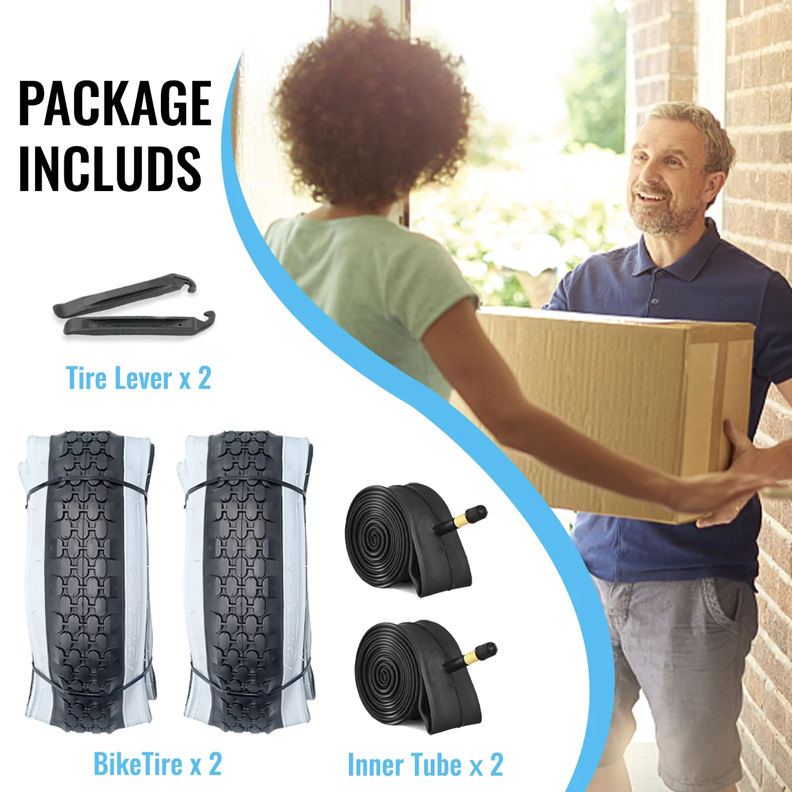 MOHEGIA Beach Cruiser Bike Tires Replacement Kit with 26 x 2.125 Inch Folding Bicycle Tires,Inner Tubes and Tire Levers (2 Packs) - Curated Treasures Market