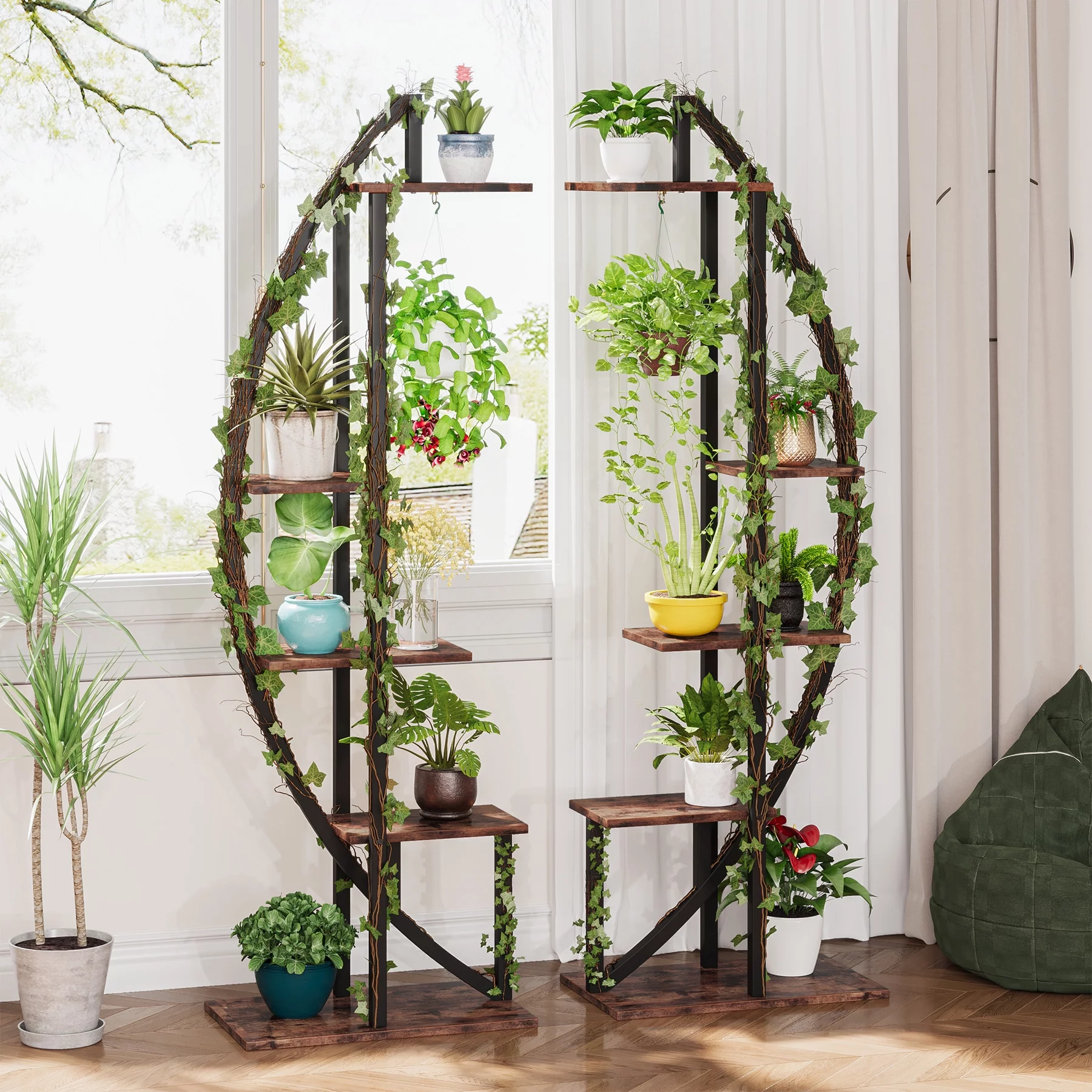 TribeSigns 63" x 20" x 12" 5 Tier Brown Wood Modern Plant Stand (2 Pack) - Curated Treasures Market