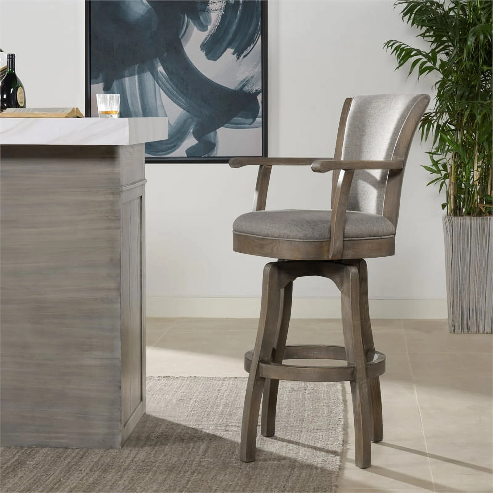 Home Square 3 Piece 30" Swivel Bar Stool with Armrests Set in Heathered Grey - Curated Treasures Market