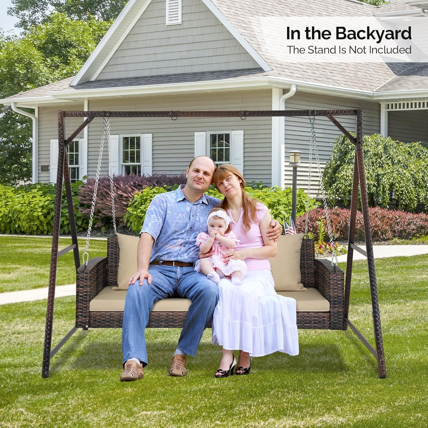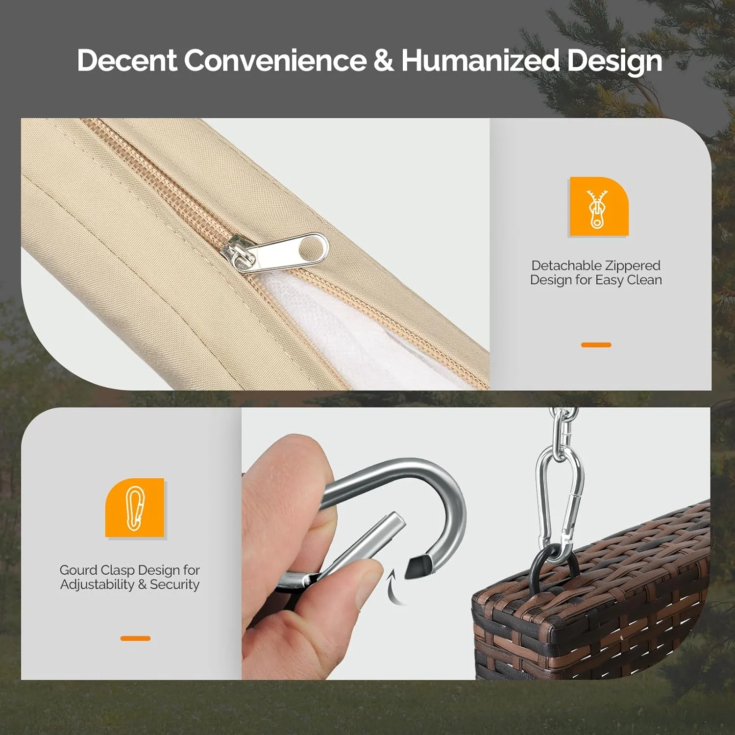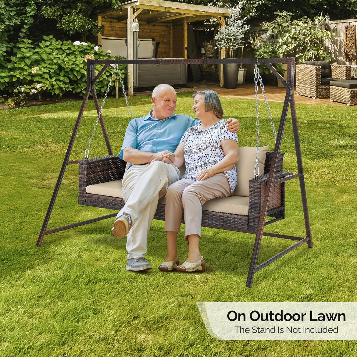 VINGLI 5 ft Rattan Outdoor Porch Swing, Heavy Duty 800 lbs Wicker Hanging Swing with Cushions for Porch, Yard, Balcony, Tree, Brown - Curated Treasures Market