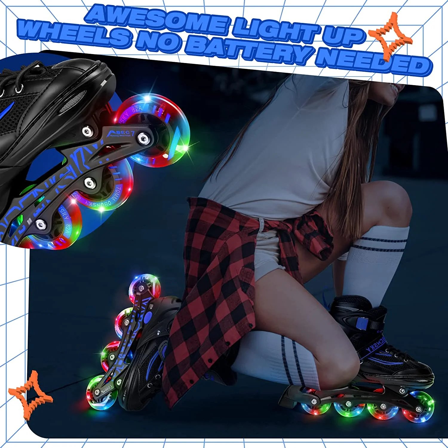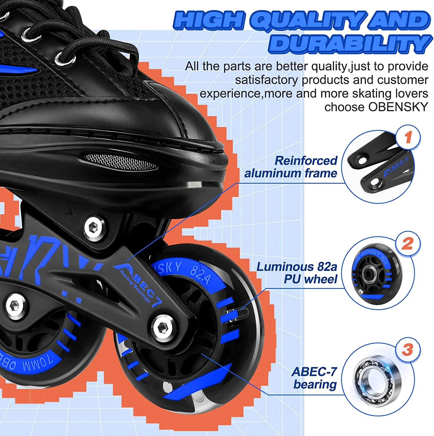 OBENSKY Adjustable Inline Skates, Illuminating Roller Blades for Kids, Boys& Girls Beginner w/ Light up Wheels-Blue - Curated Treasures Market