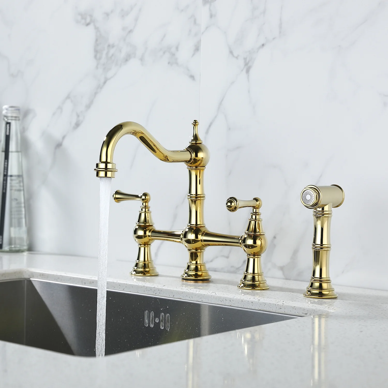 YLtoohoom Bridge Dual Handles Kitchen Faucet With Pull-Out Side Spray in - Curated Treasures Market