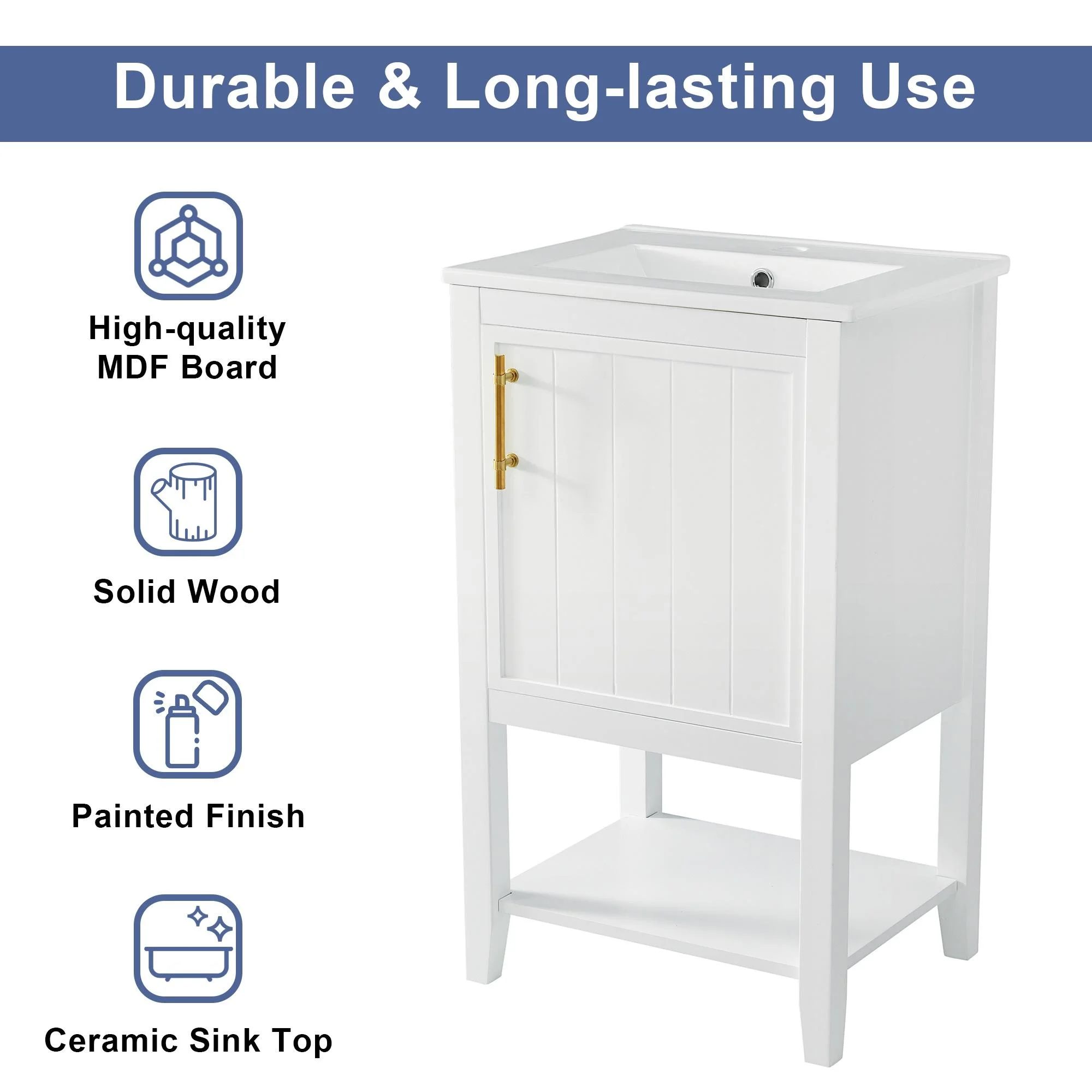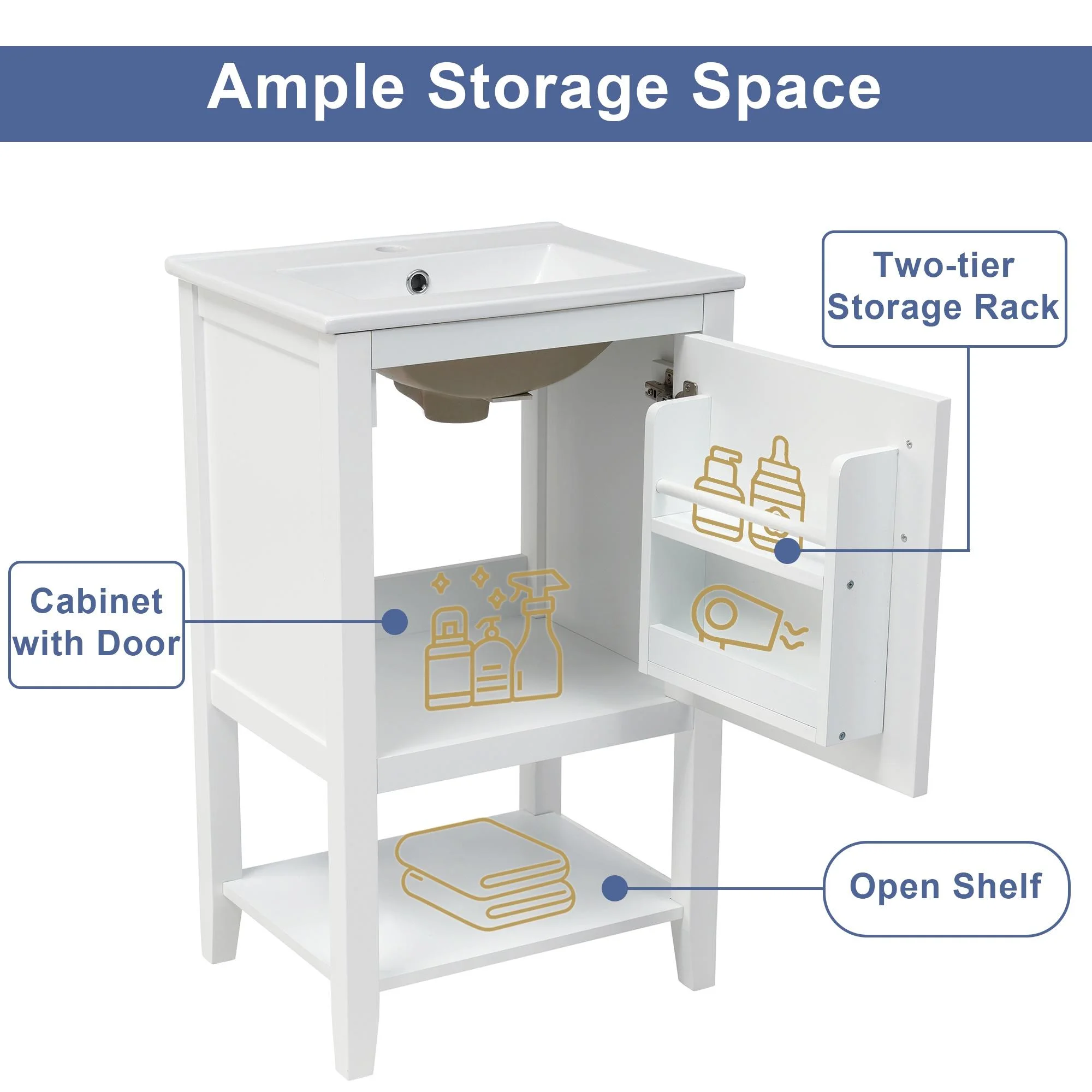Bellemave Modern 20" Bathroom Vanity Set with Sink Combo Wooden Storage Cabinet with Ceramic Sink Free Standing Single Basin Vanity Storage Cabinet with Door and Shelf, (20”, White) - Curated Treasures Market