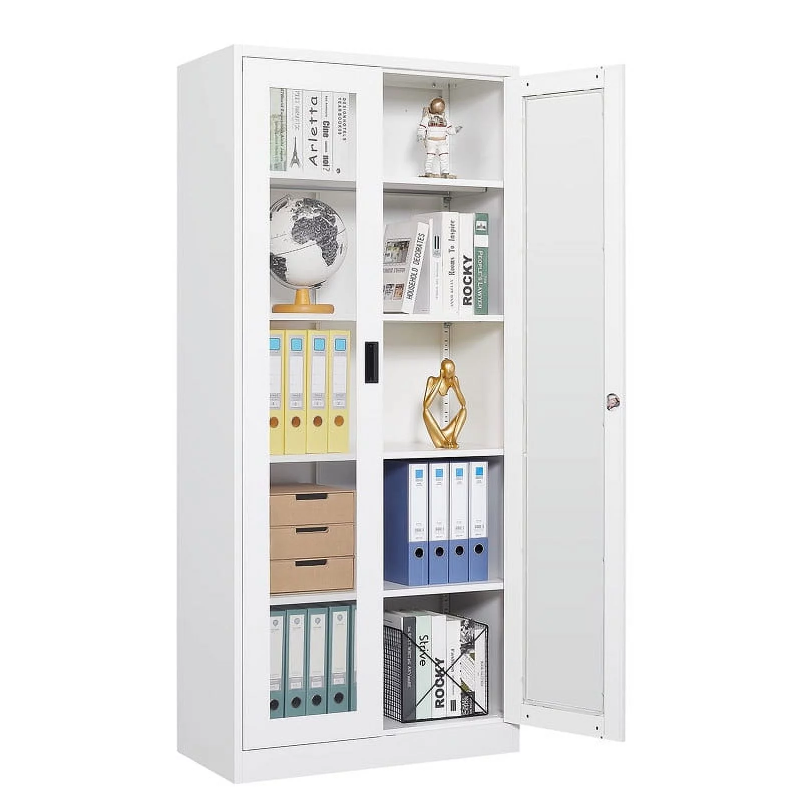 STANI 71" Metal Storage Cabinet, 71" Tall Curio Cabinet Glass Display Cabinet with Glass Door & 4 Adjustable Shelves, Freestanding Bookcase Locker Storage Cabinet for Home Office Living Room - Curated Treasures Market