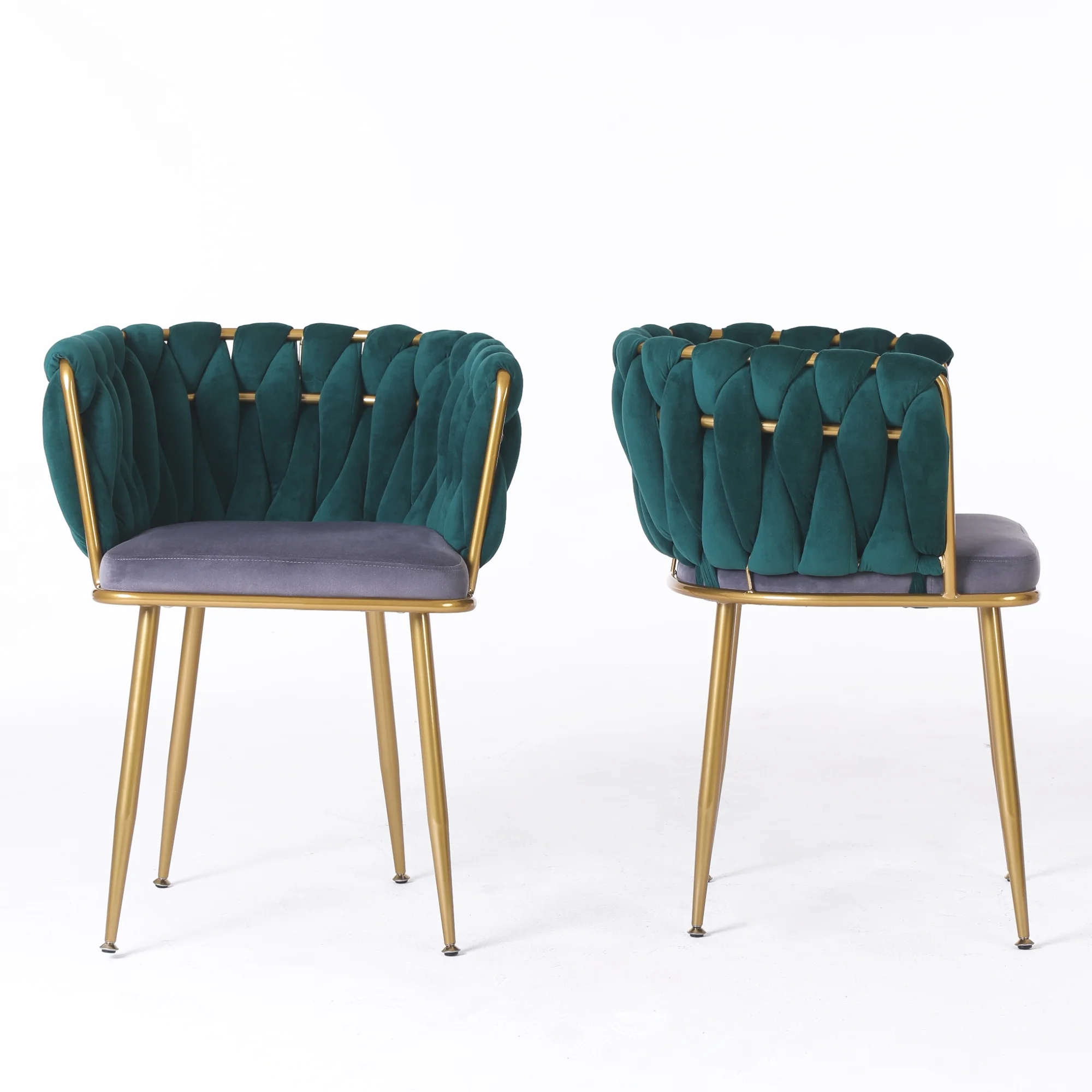 Living Room Chairs,Velvet Makeup Vanity Chair with Back Arm Modern Bedroom Accent Chair Elegant Comfy Single upholstered Chair with Gold Metal Legs (dark green,2 set) - Curated Treasures Market
