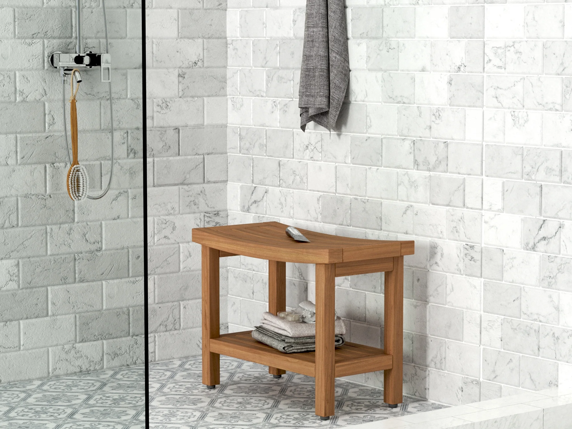 Patented 24" Sumba? Teak Shower Bench with Shelf - Curated Treasures Market