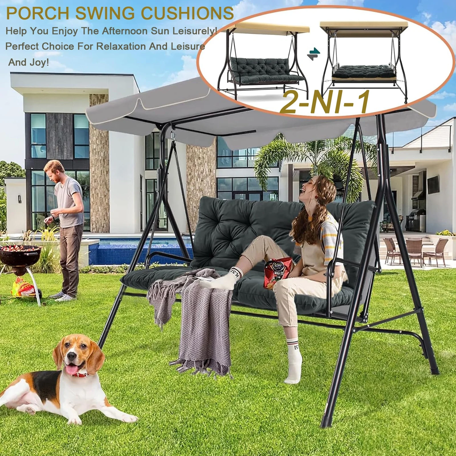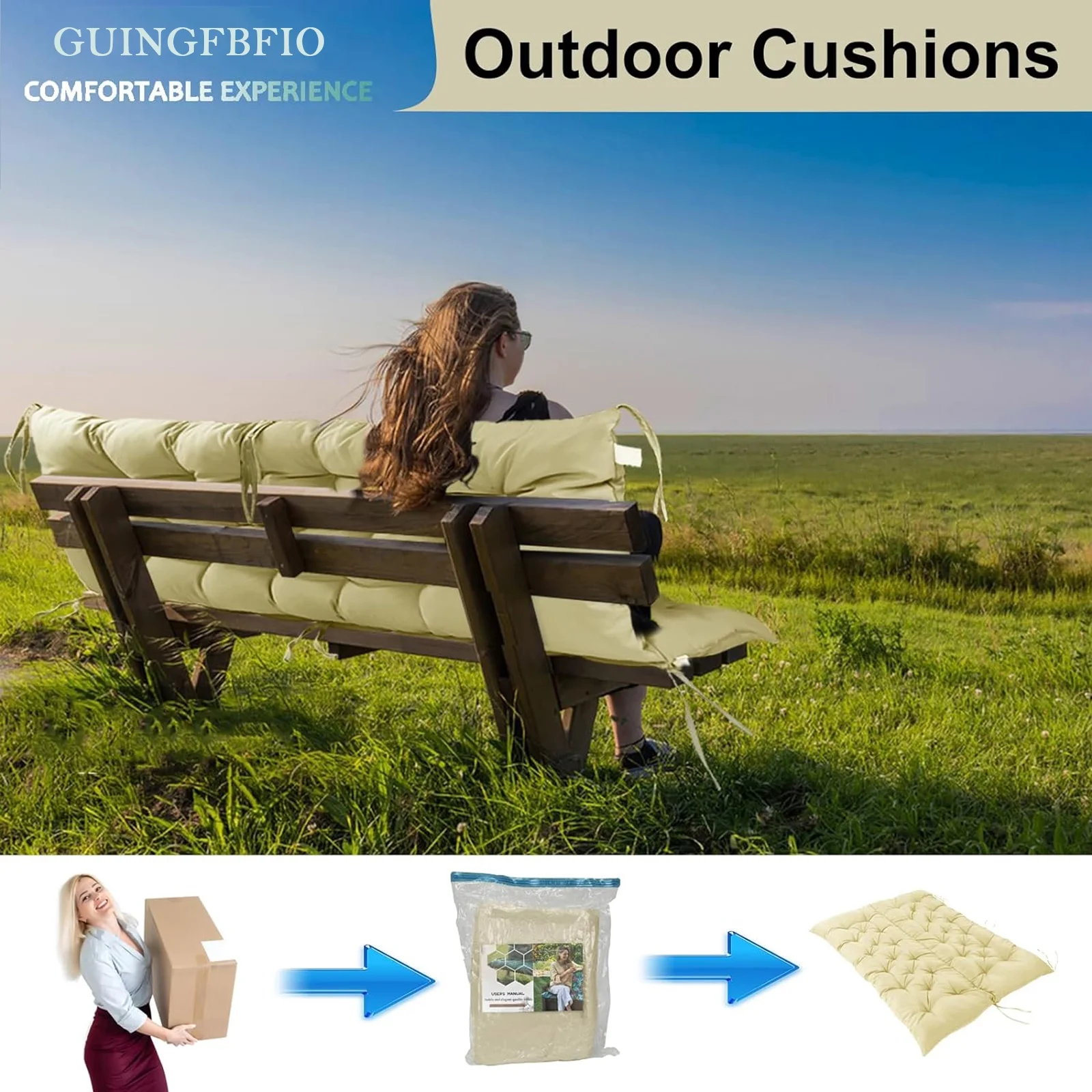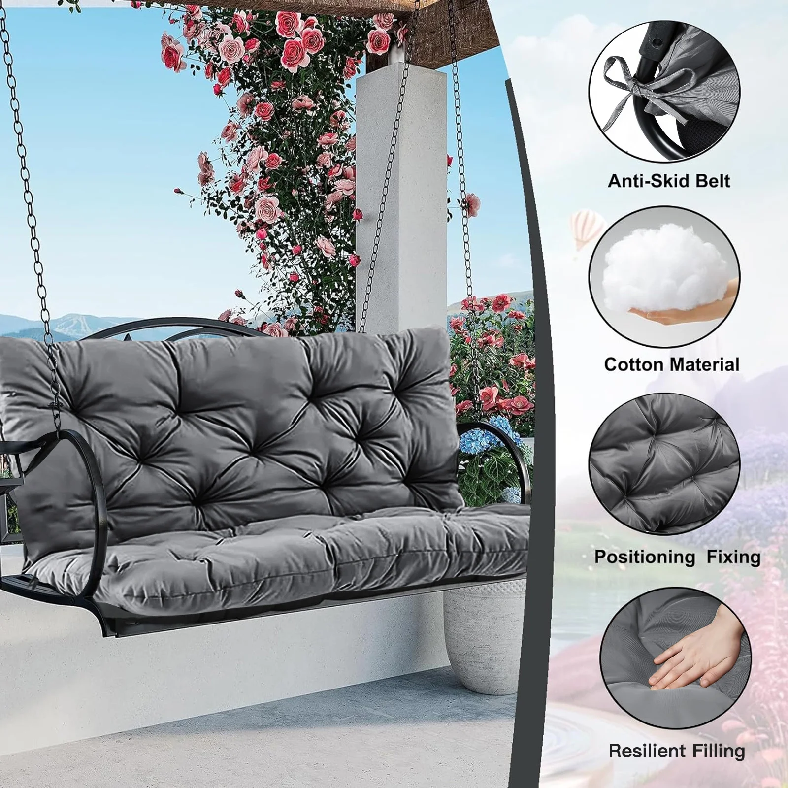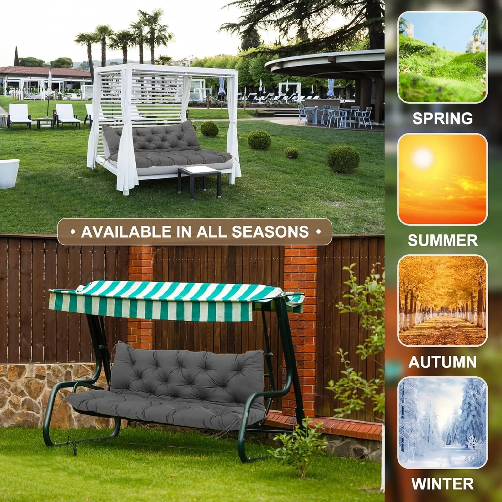 Replacement Cushions for Swing,Thicken 4" Waterproof Porch Swing Seat Cushion with Backrest and Ties for Patio Backyard Porch Garden - Curated Treasures Market