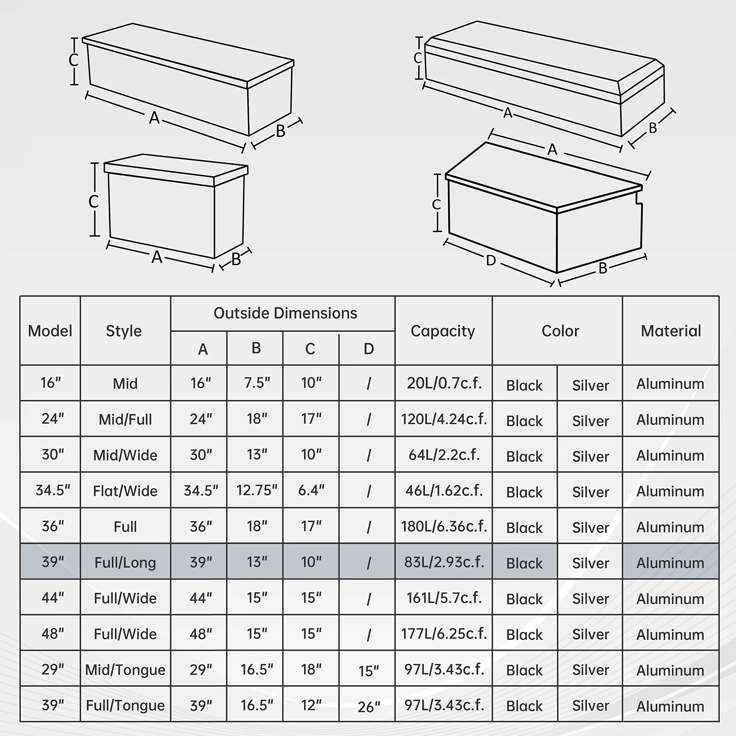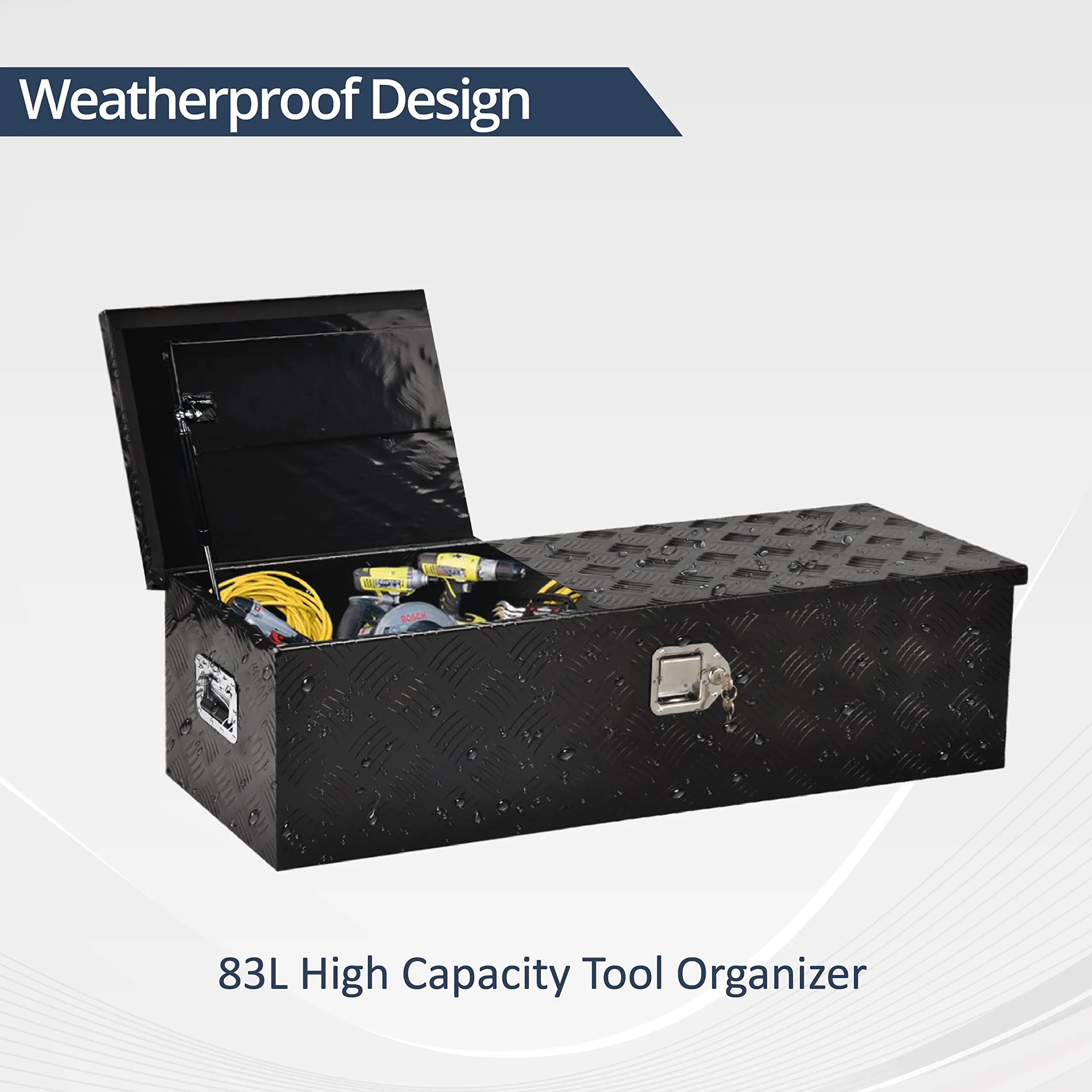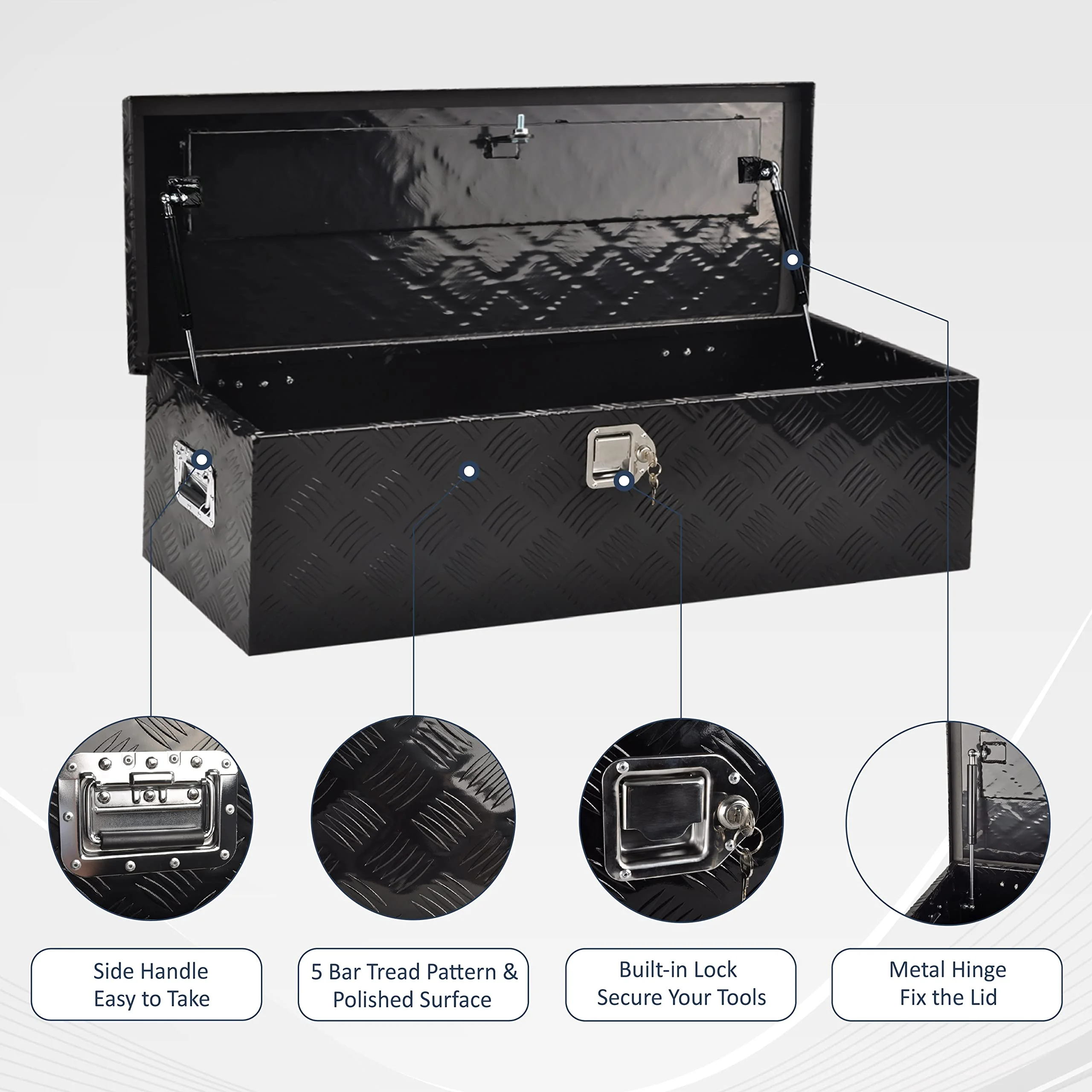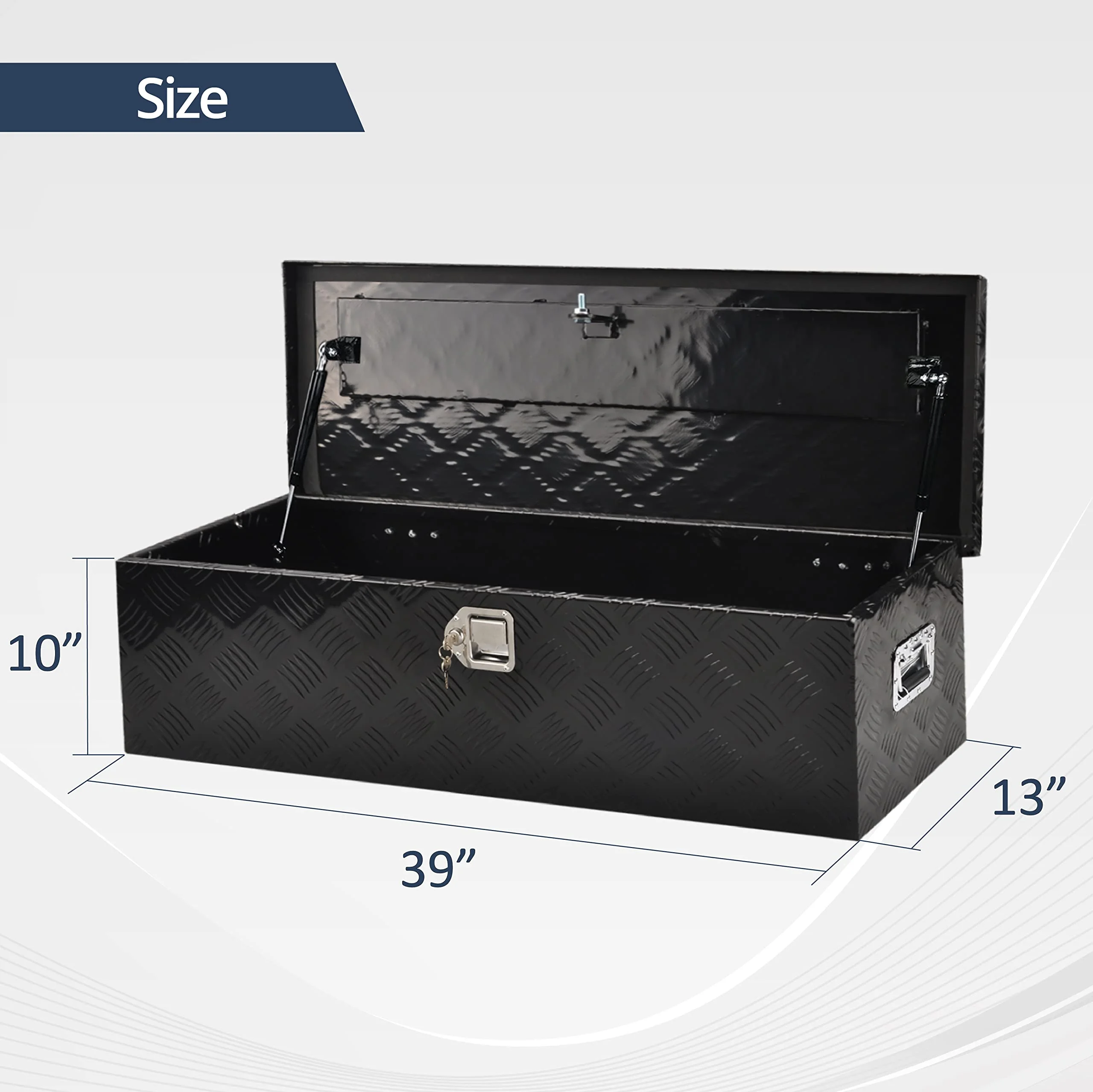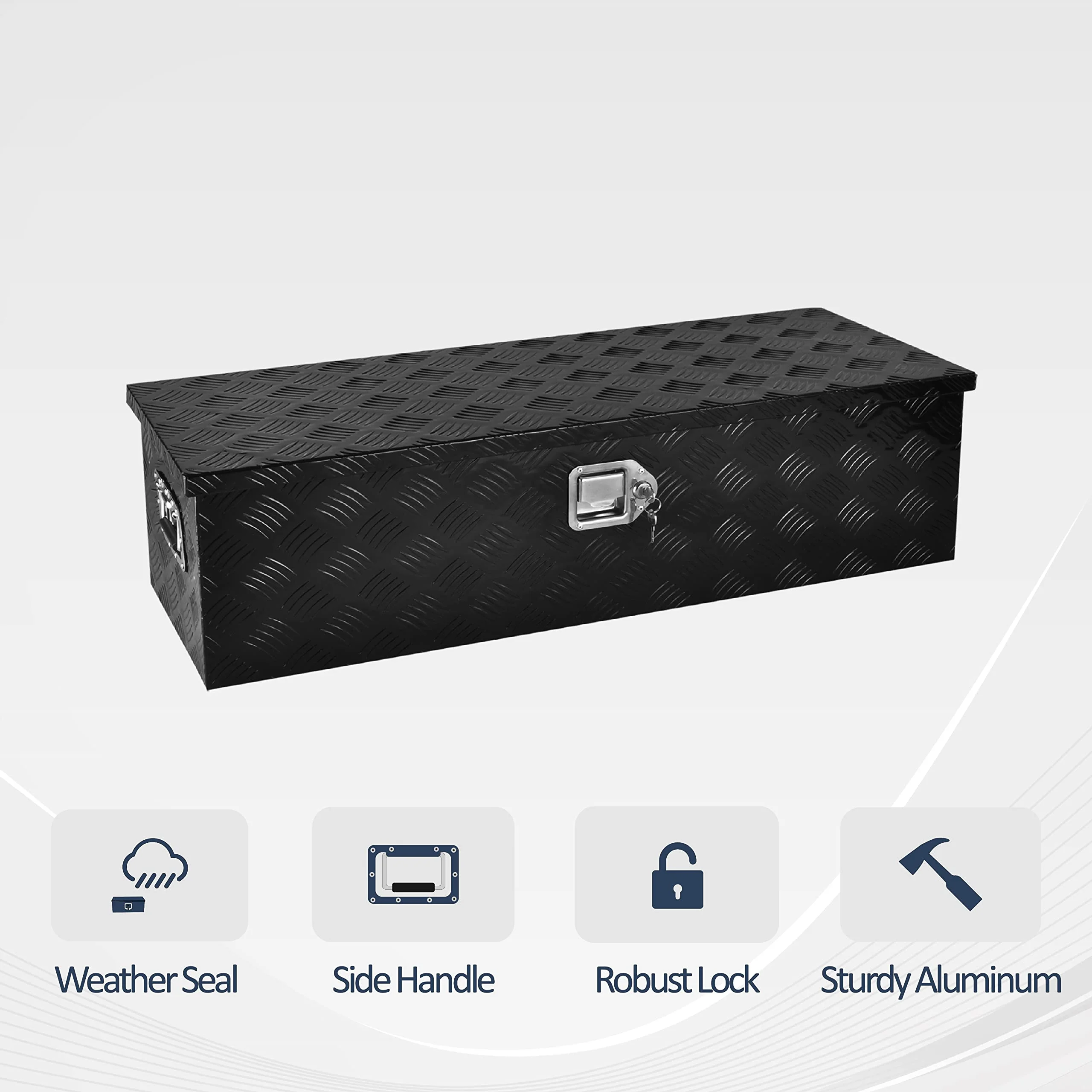 BATONECO 39 Inch Aluminum Trailer Tool Box Truck Bed Tool Box for Pickup w/ Side Handle 39 x 13 x 10 Black - Curated Treasures Market