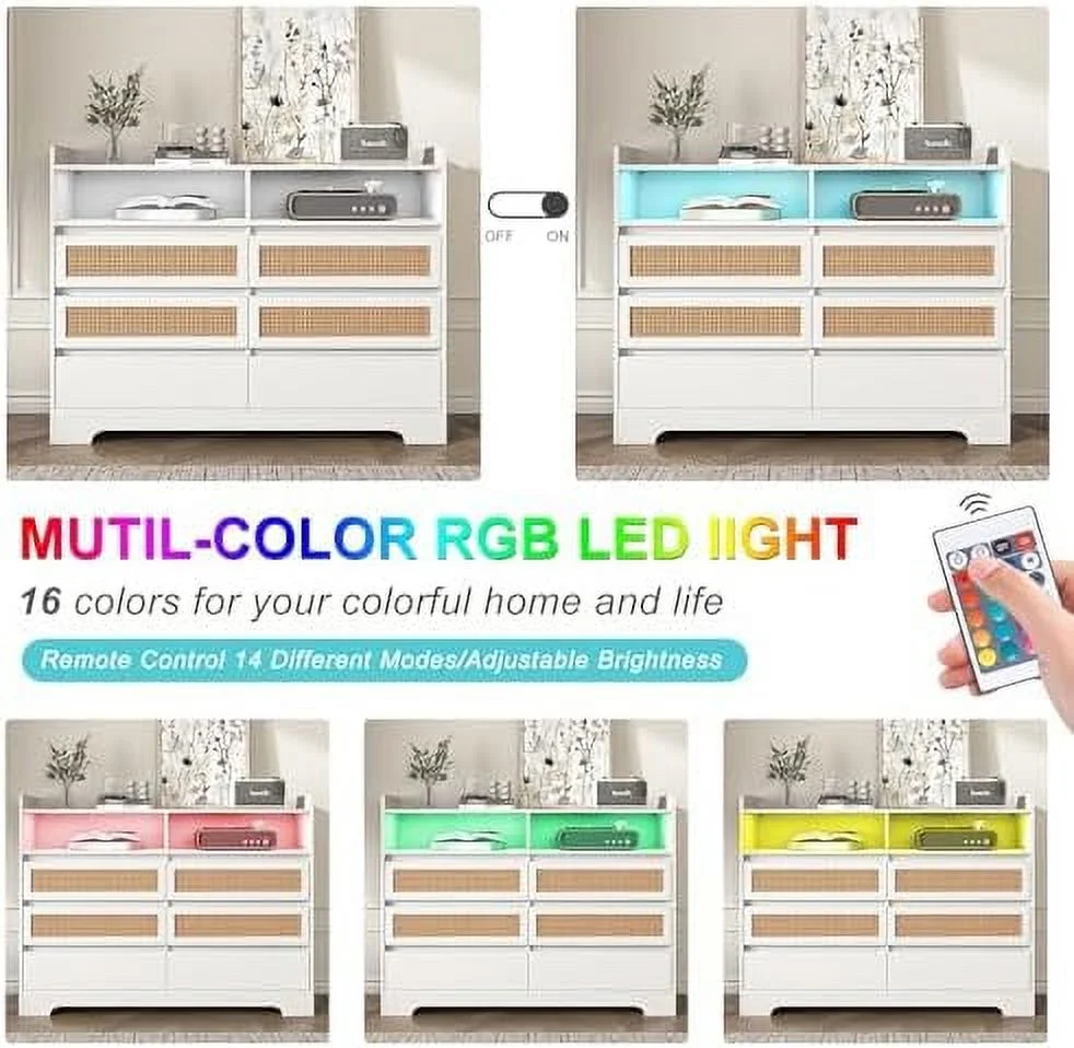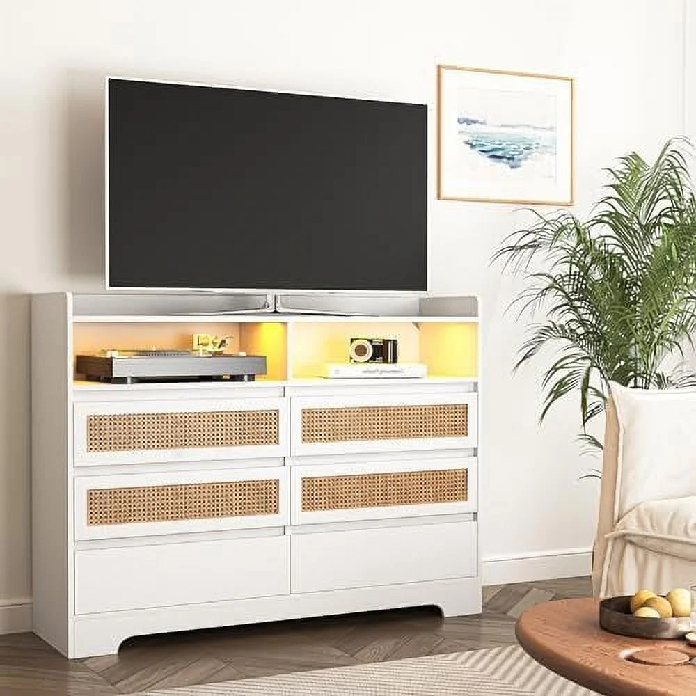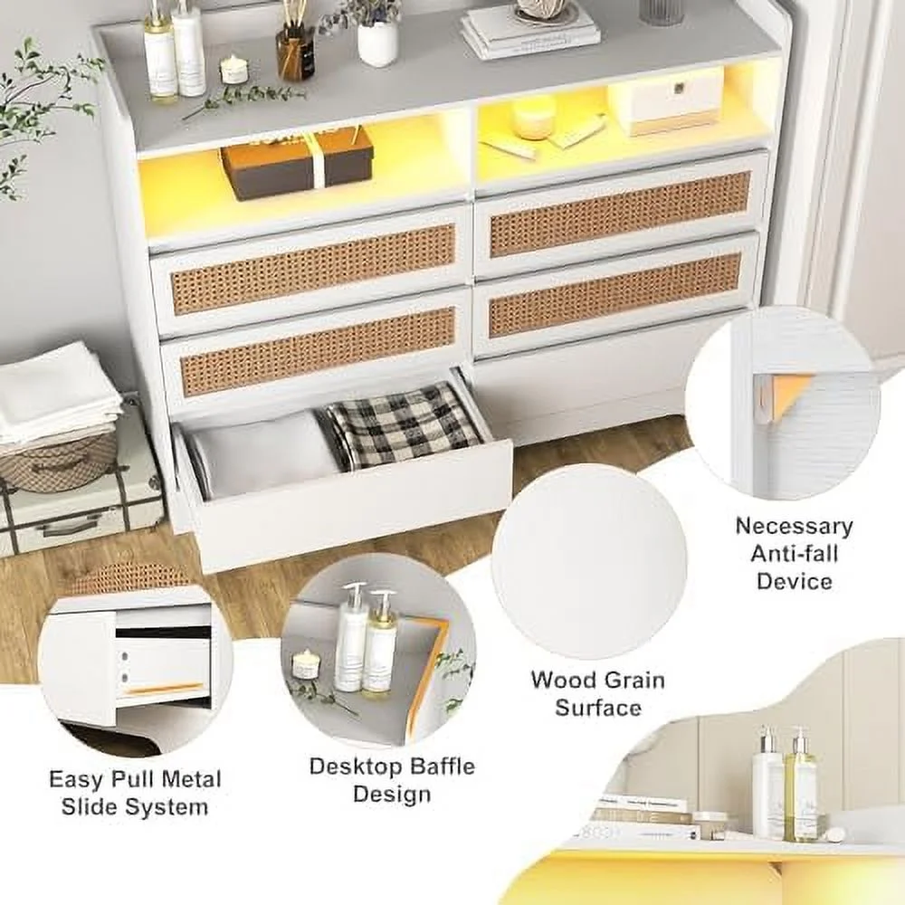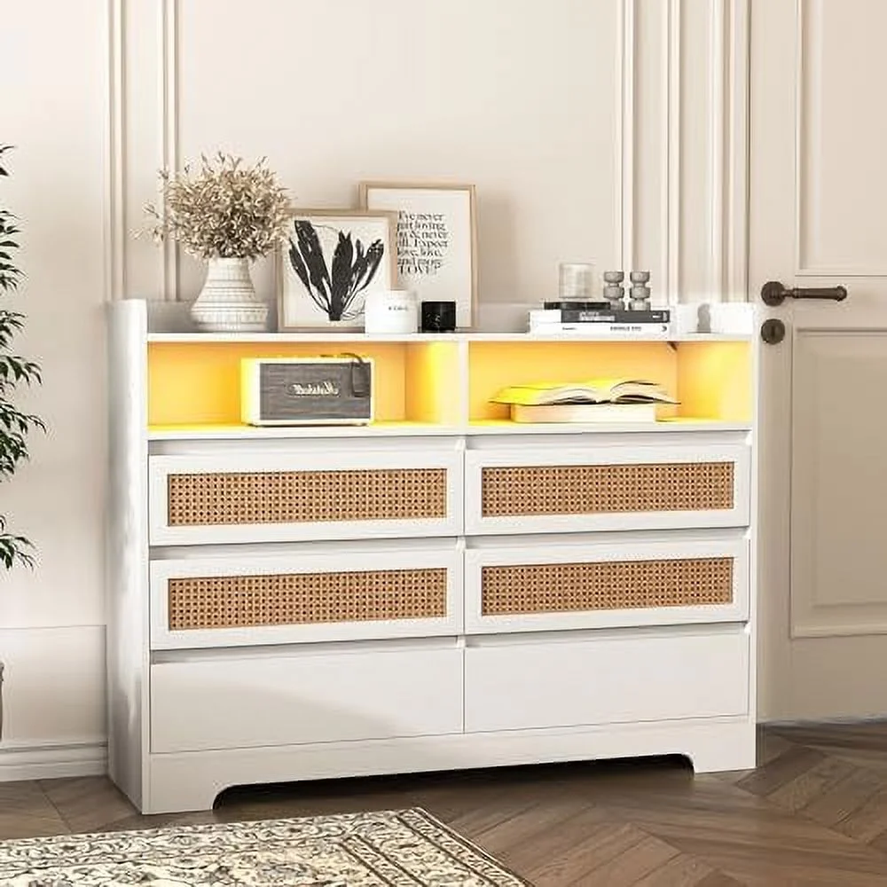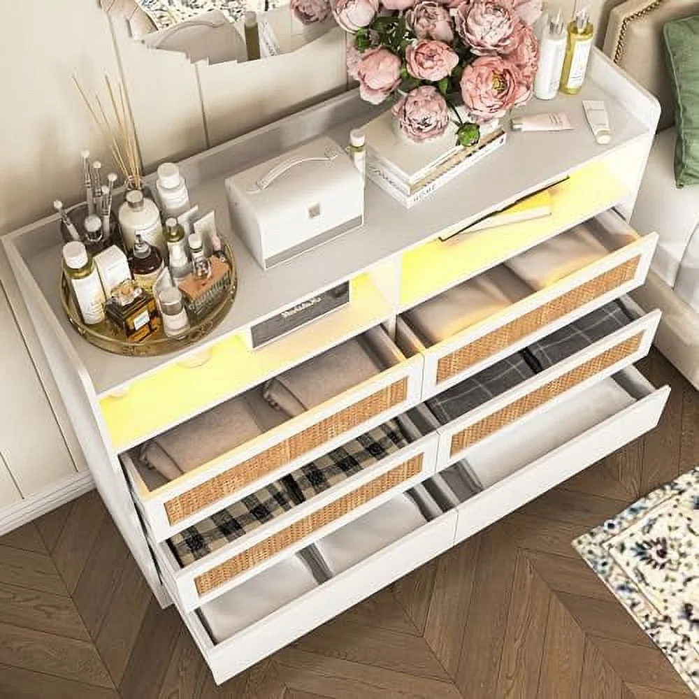 GVJMTKP Vibe & Dine White Dresser with Led Lights Modern Chest of Drawers 100% Waterproof and Easy to Clean FreeStanding 6 Drawer Dresser for Bedroom Living Room Entryway Hallway - Curated Treasures Market