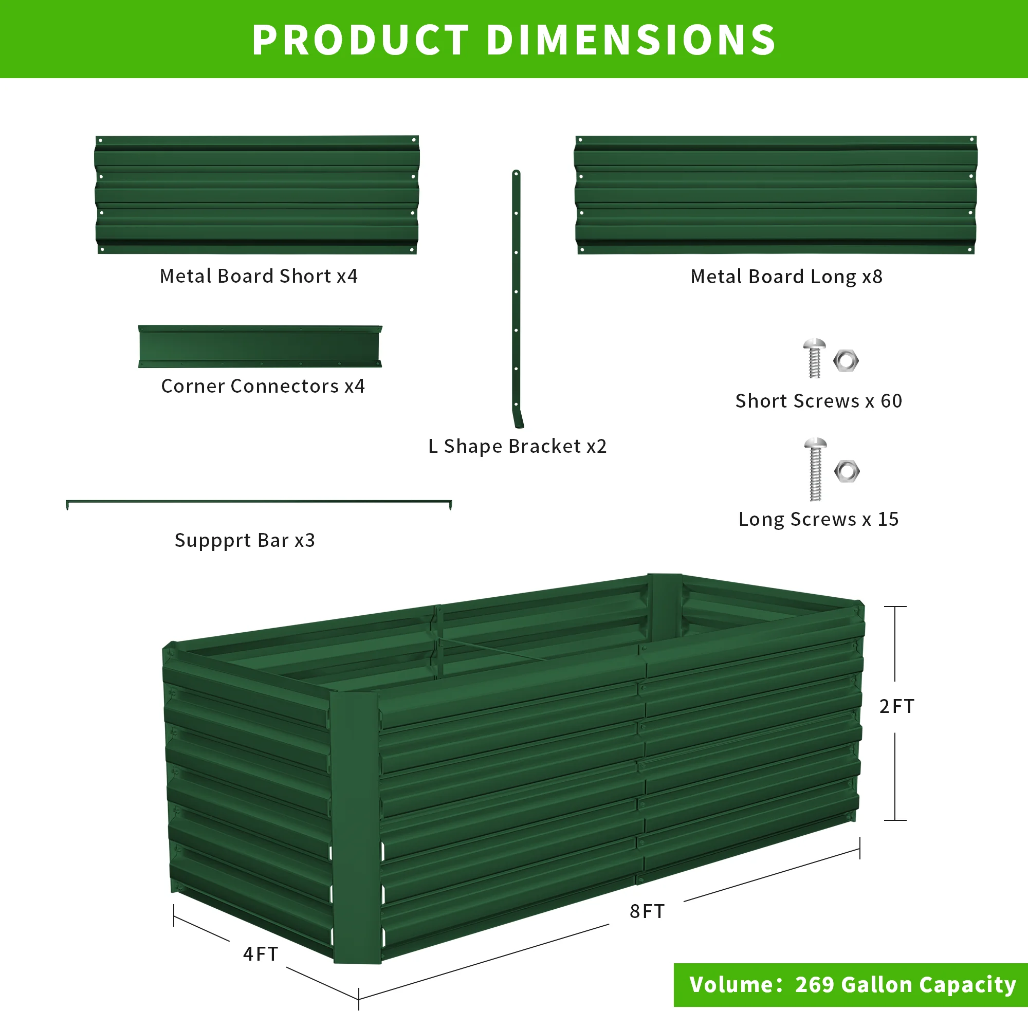 Outdoor Metal Raised Garden Bed,8x4x2ft Planter Box for Vegetables,Flowers,Herbs w/478 Gallon Capacity, Green - Curated Treasures Market