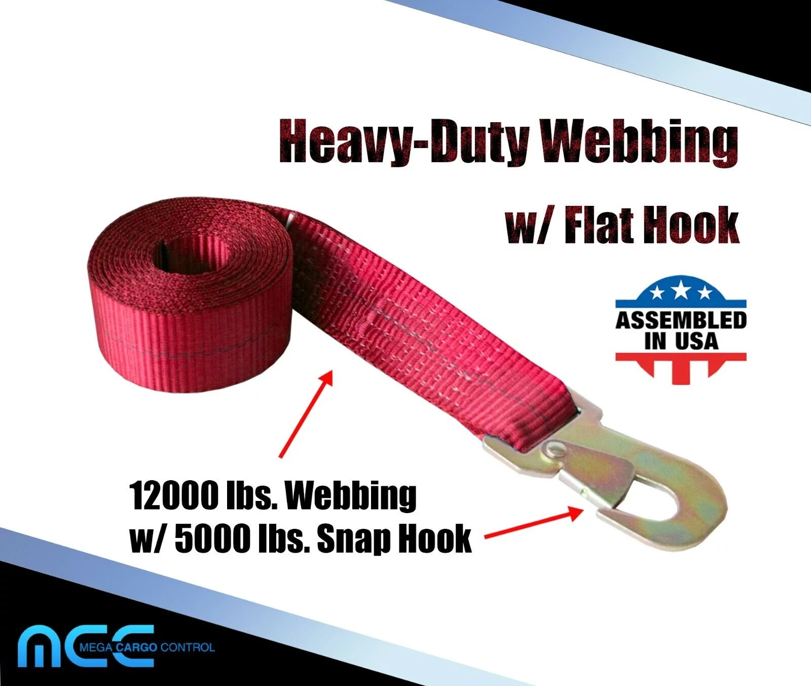 Mega Cargo Control USA 2" x 8' Ratchet Strap W/ Flat Snap Hook - (1-Pack) - WLL: 1666 lbs - Curated Treasures Market