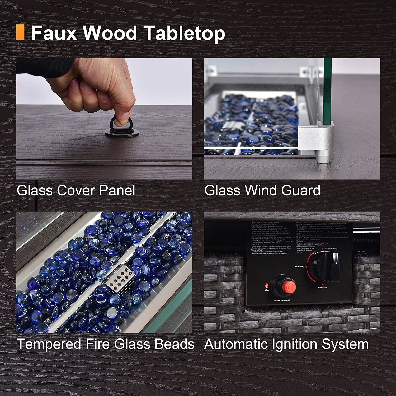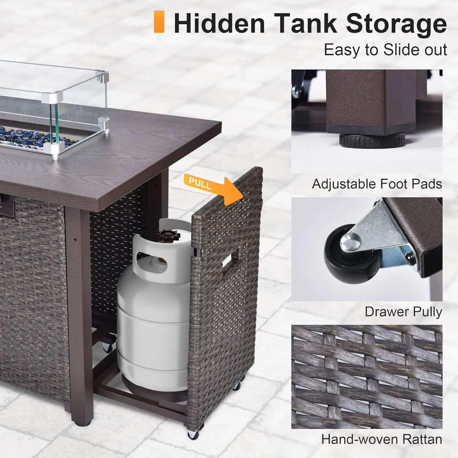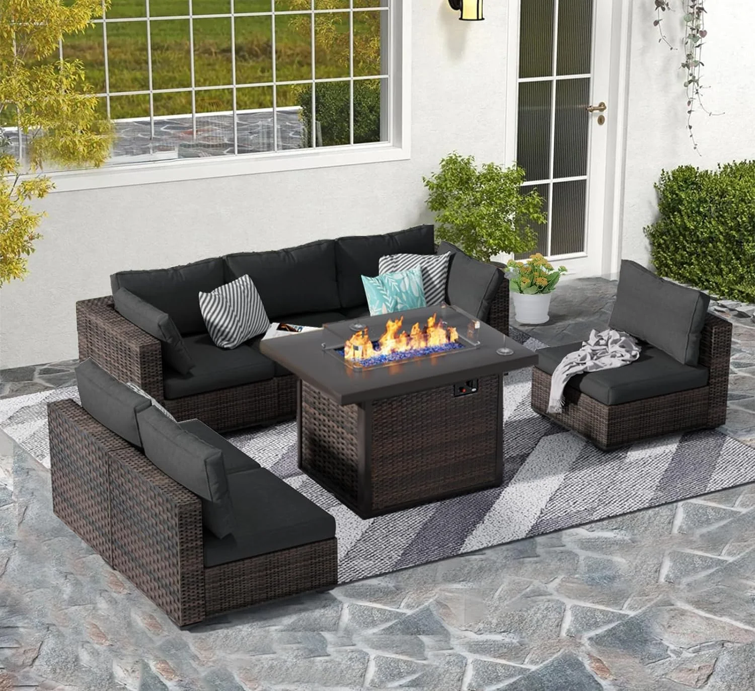 Gaildon 7 Piece Patio Furniture Set with Fire Pit Table, All Weather Outdoor Sectional PE Rattan, Patio Conversation Sets with Cushions and Glass Coffee Table for Garden Lawn Balcony Porch Deck - Curated Treasures Market