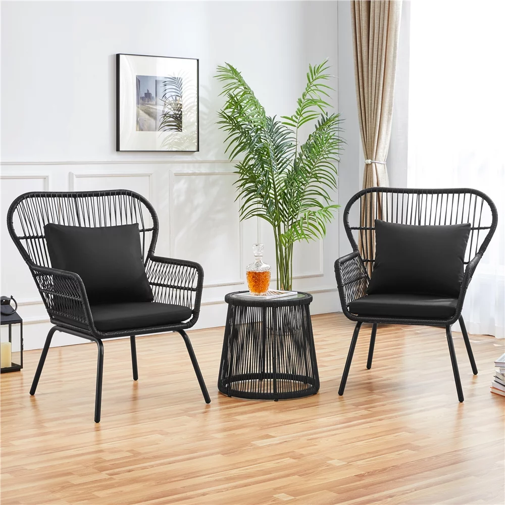 Yaheetech Outdoor 3-Piece Patio Conversation Bistro Set for Garden, Black - Curated Treasures Market