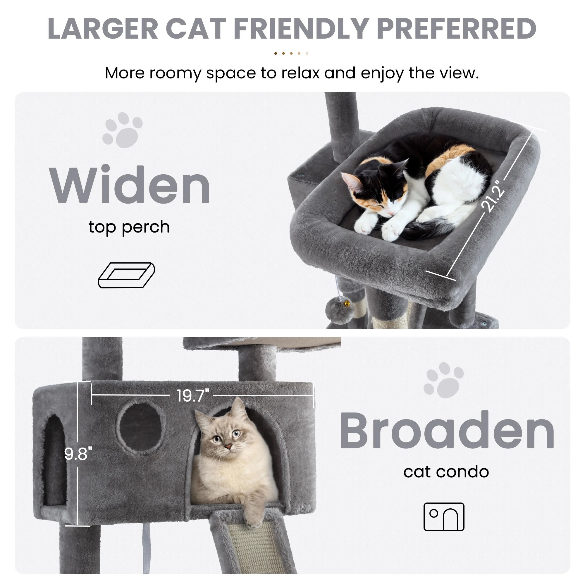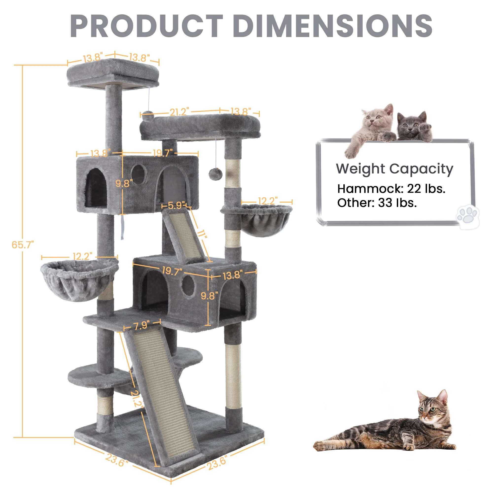 Sha Cerlin 65.7 " Cat Tree Tower and Condo for Large Cats with Hammock & Scratching Posts, Grey - Curated Treasures Market