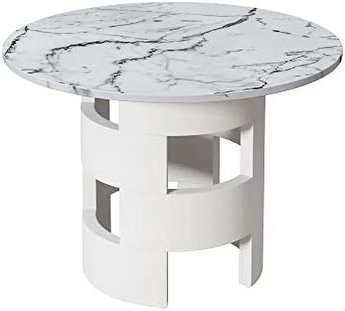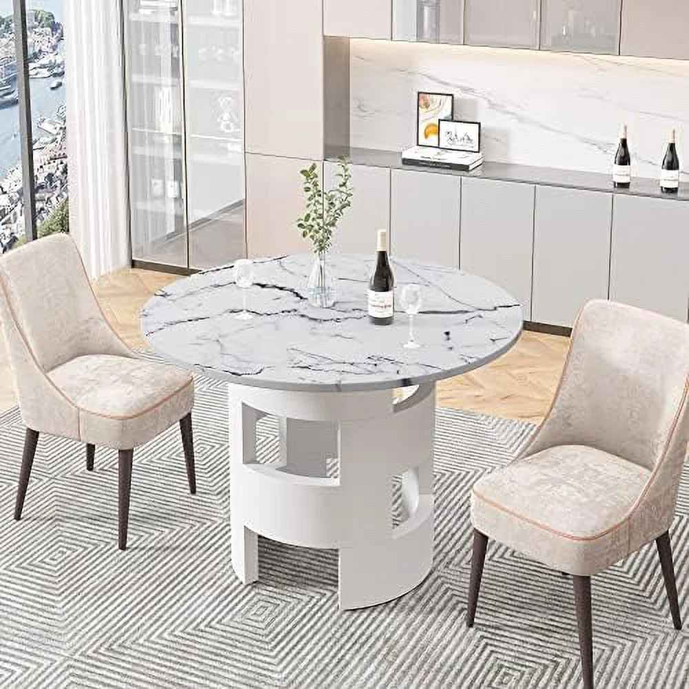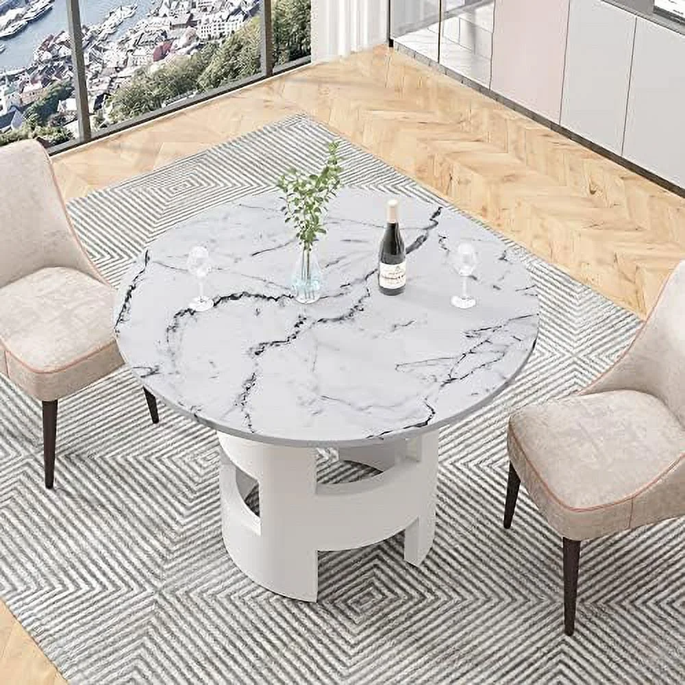 JYHOME White Round Dining Table for 4-6 42" Kitchen Table with Circle Marble Grain Top Small Faux Marble Dining Room Table Modern Dinner Table for Dining Room Kitchen Living Room Off - Curated Treasures Market