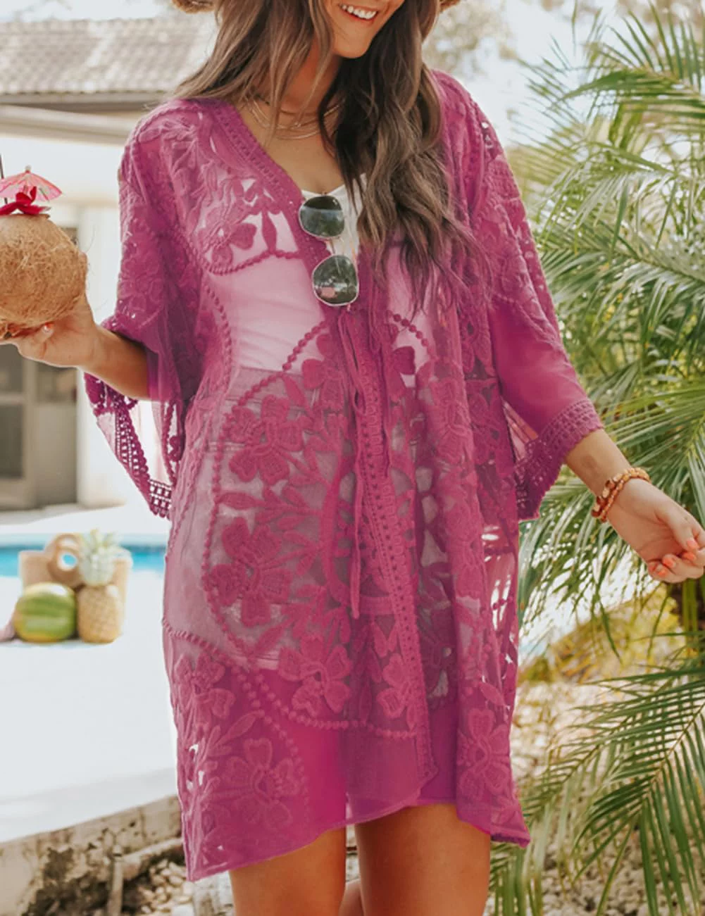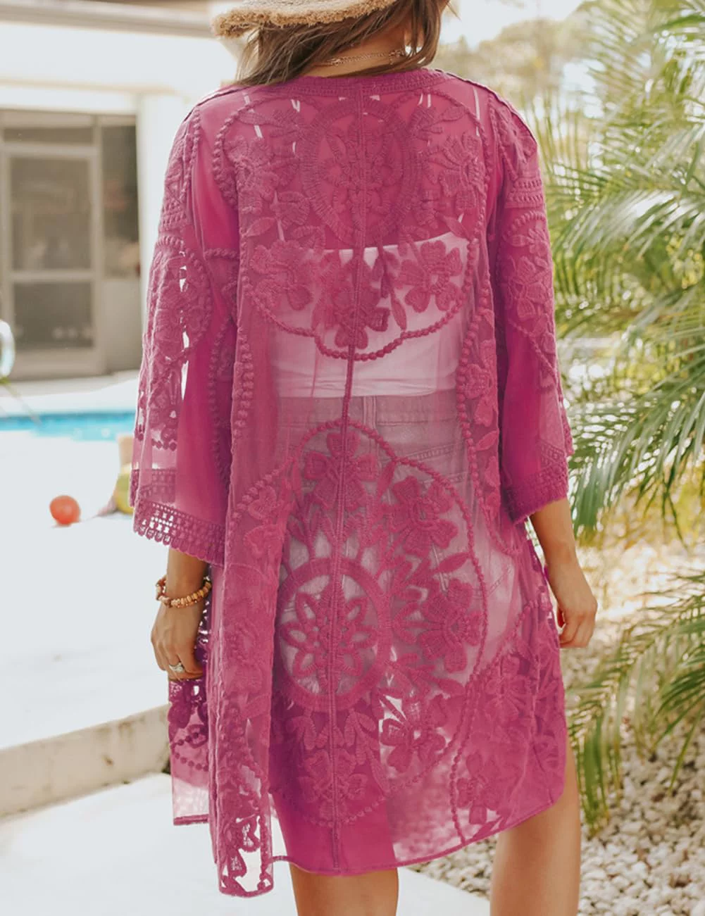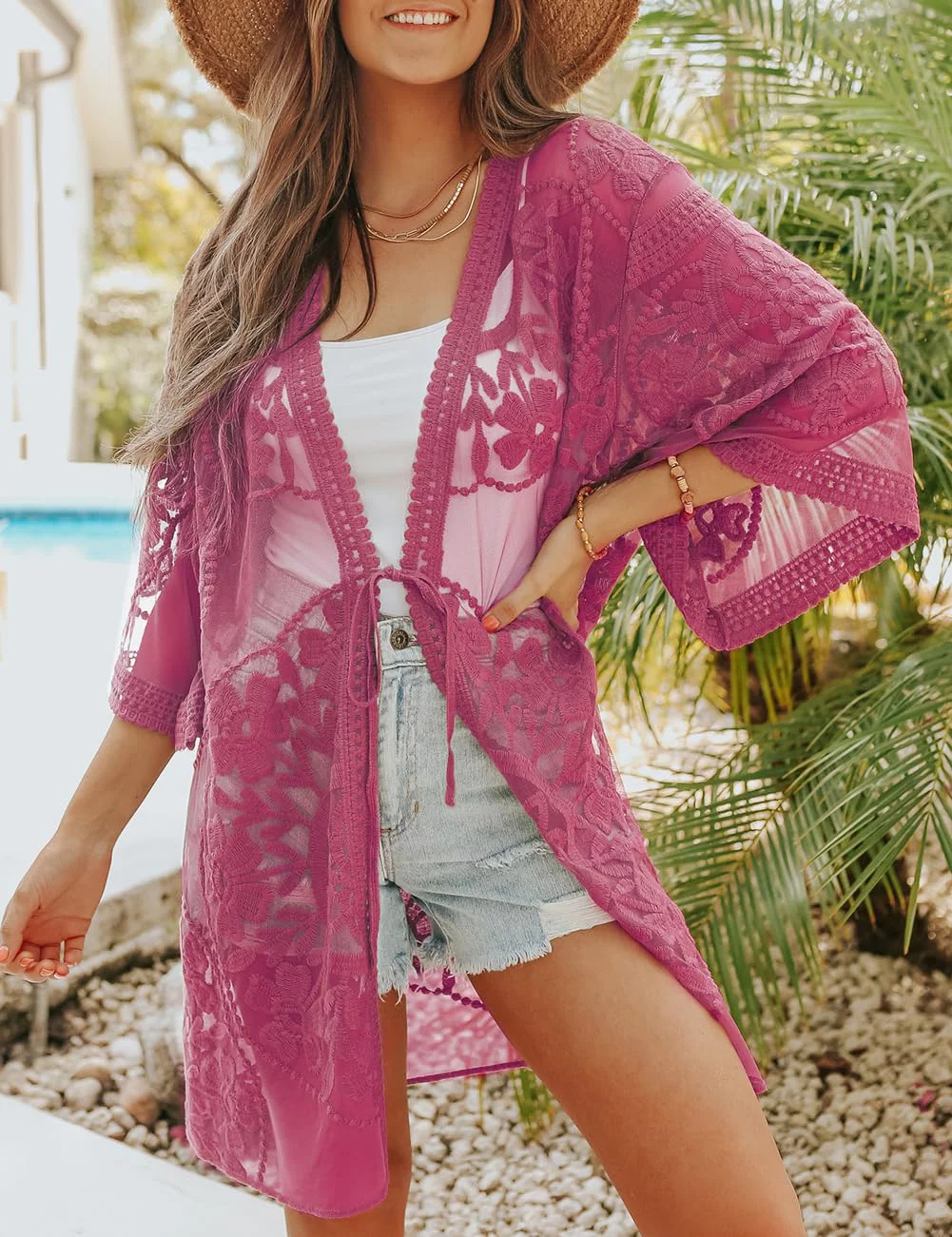 Bsubseach Sexy See Through Swimsuit Cover Up for Women Mesh Bikini Beach Kimono Cardigan - Curated Treasures Market