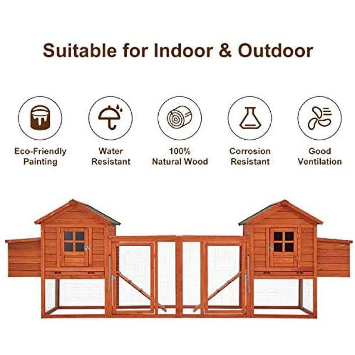 YODOLLA 144" Wooden Chicken Coop, Large Hen House Poultry Cage with Ramp and Nesting Box for 10 chickens - Curated Treasures Market