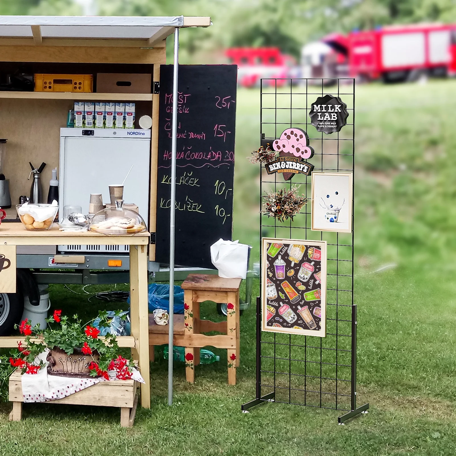 Bonnlo 6' x 2' Wire Grid Panel Tower with T-Base Floorstanding, Wire Grid Wall Display Rack for Retail and craft show (2-Packs) - Curated Treasures Market