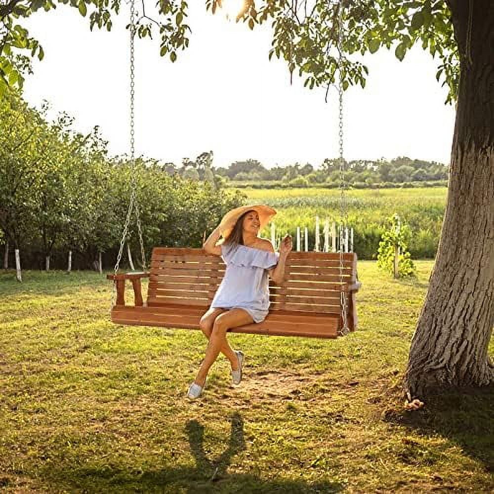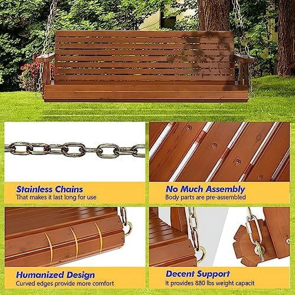 MQLIFEBOOM Upgraded Patio Wooden Porch Swing for Courtyard & Garden Heavy Duty 880 LBS Swing Chair Bench with Hanging Chains for Outdoors (5 FT White) - Curated Treasures Market