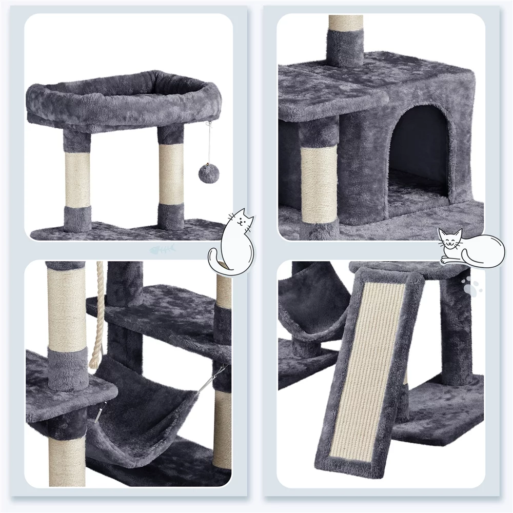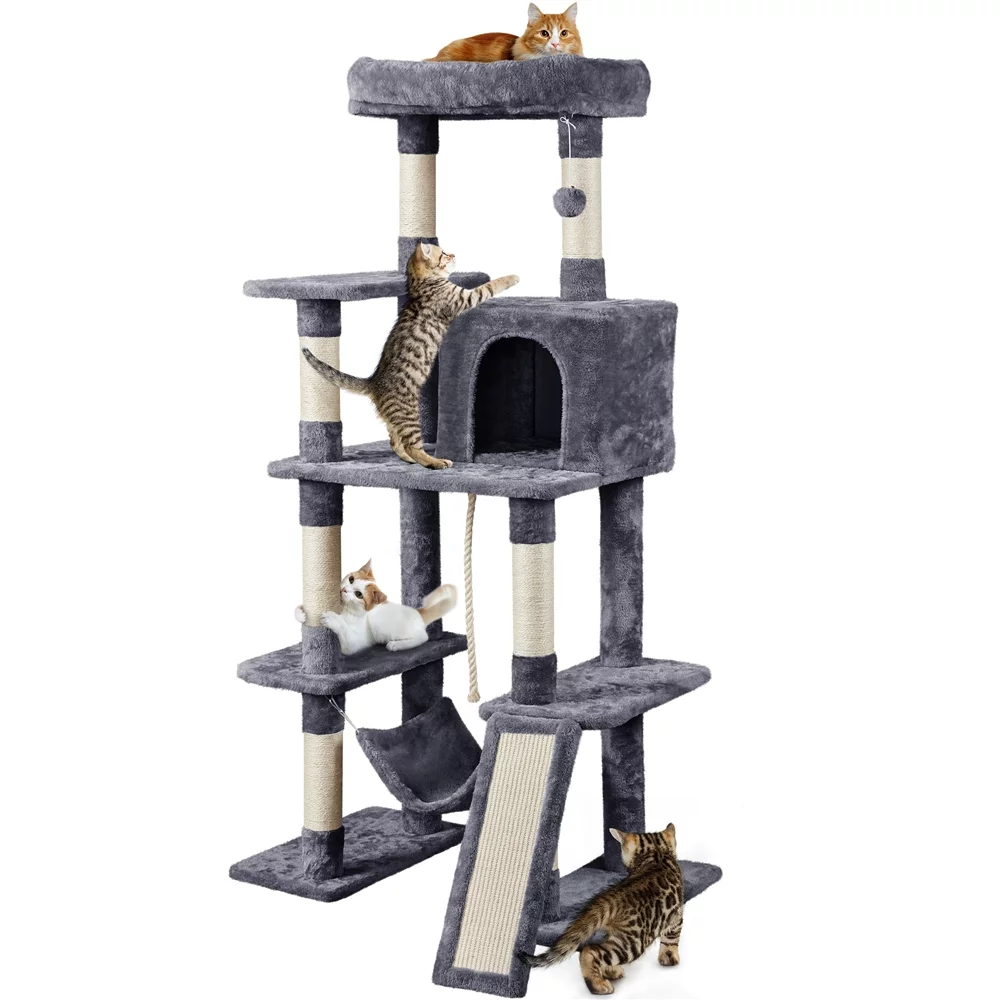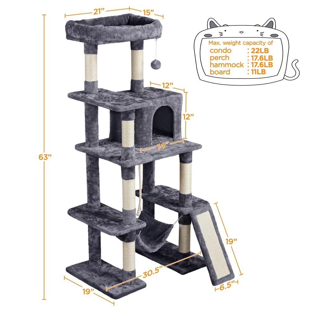 SmileMart 63" H Cat Tree Tower with Hammock and Scratching Posts, Dark Gray - Curated Treasures Market