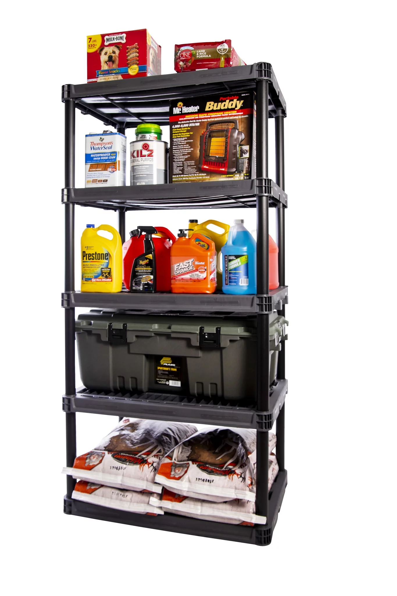 Plano 36"W x 18"D x 74"H 5 Shelf Heavy Duty Plastic Garage Shelving Unit, Dark Grey, 750 lb Capacity - Curated Treasures Market