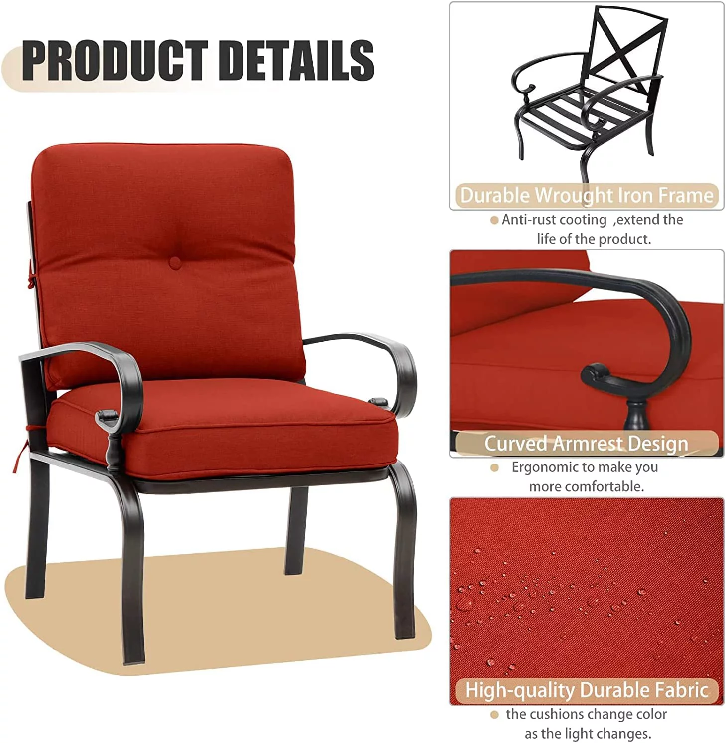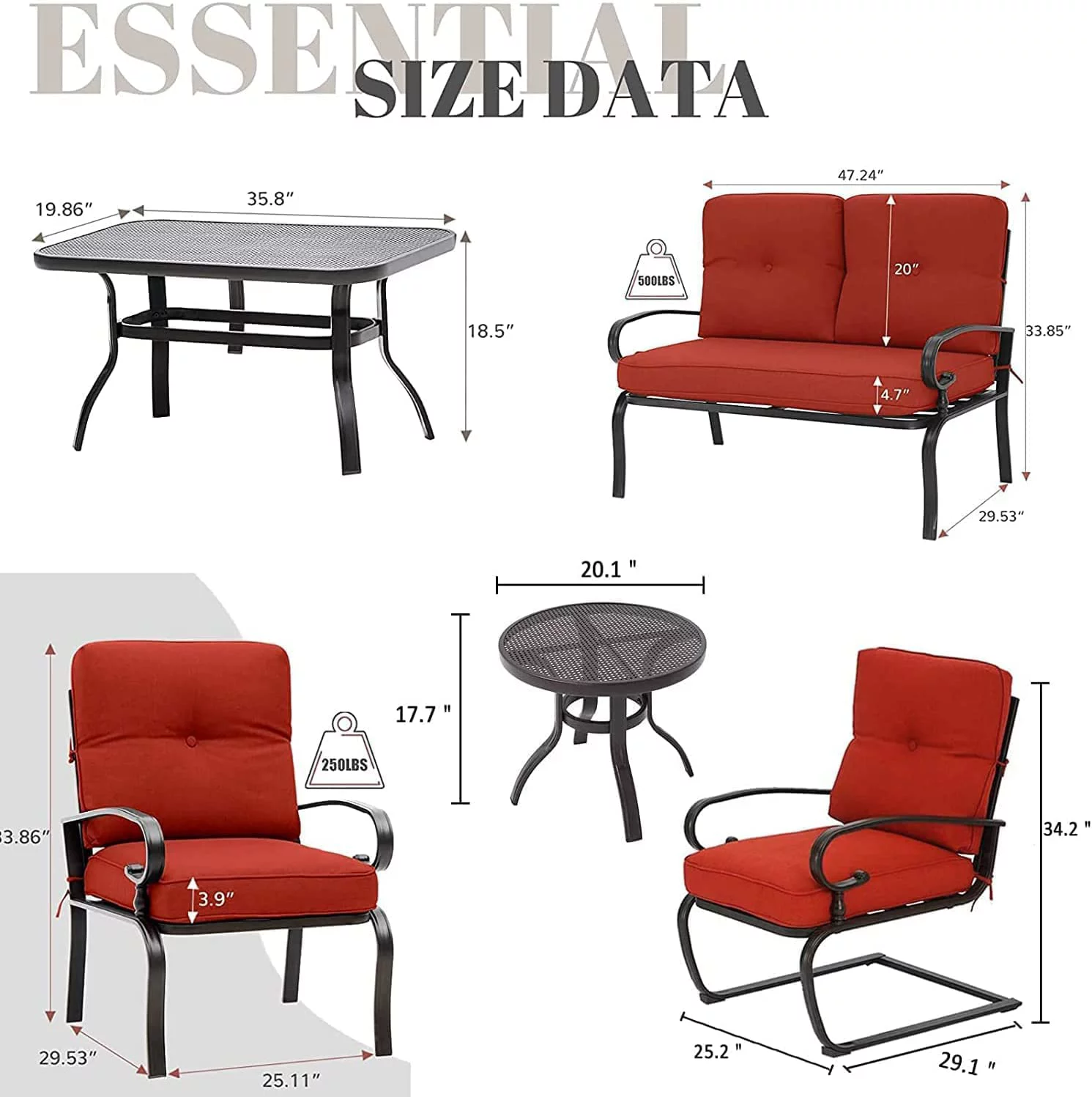 SUNCROWN 7-Piece Outdoor Metal Furniture Sets Patio Conversation Set Loveseat Louge Chairs and Table, Red - Curated Treasures Market