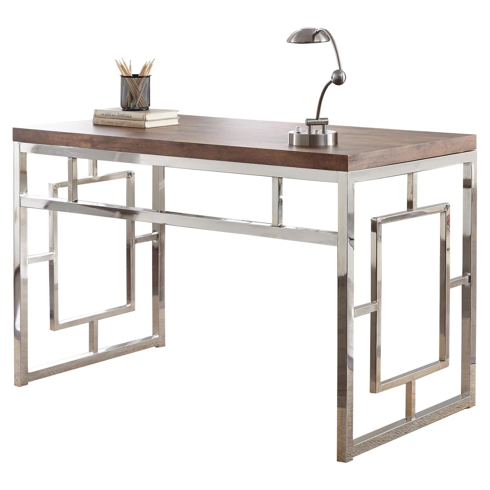 Alize Chrome Metal Desk with Brown Faux Wood Top - Curated Treasures Market
