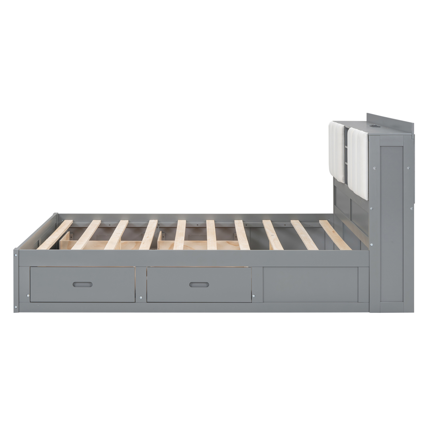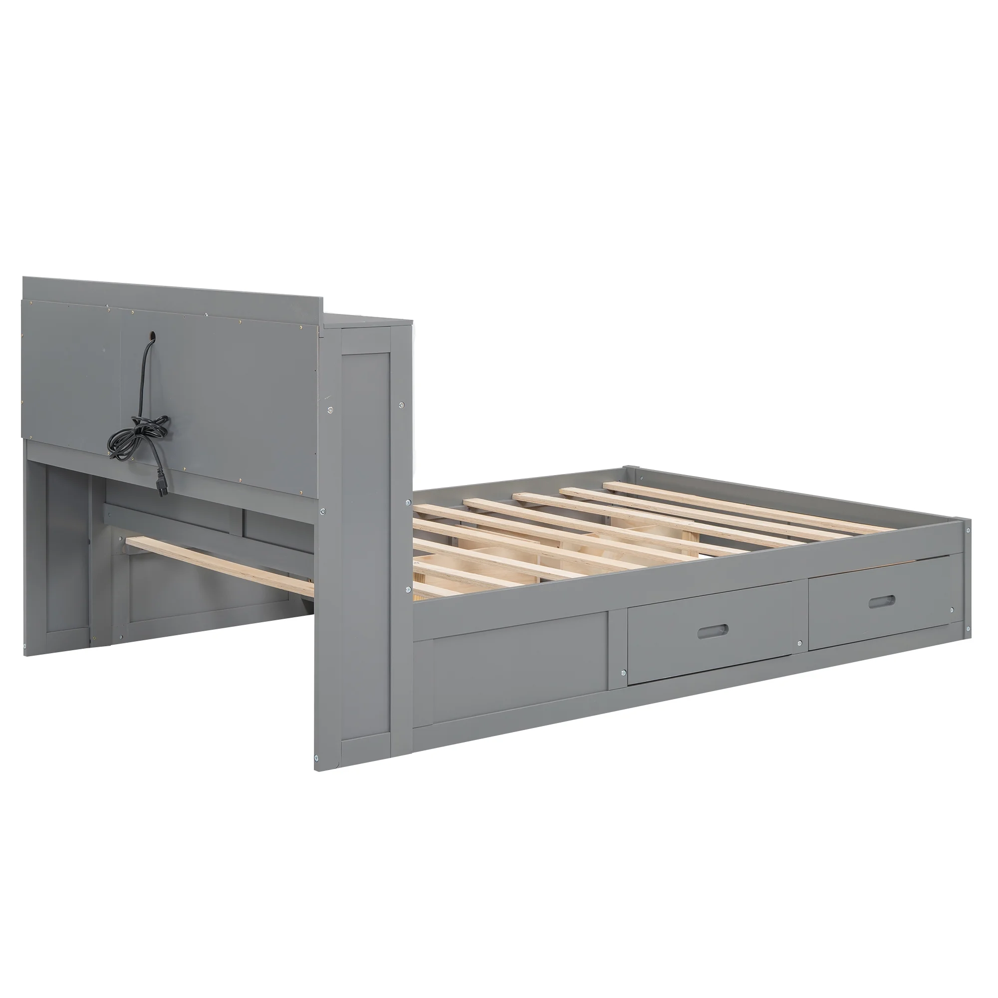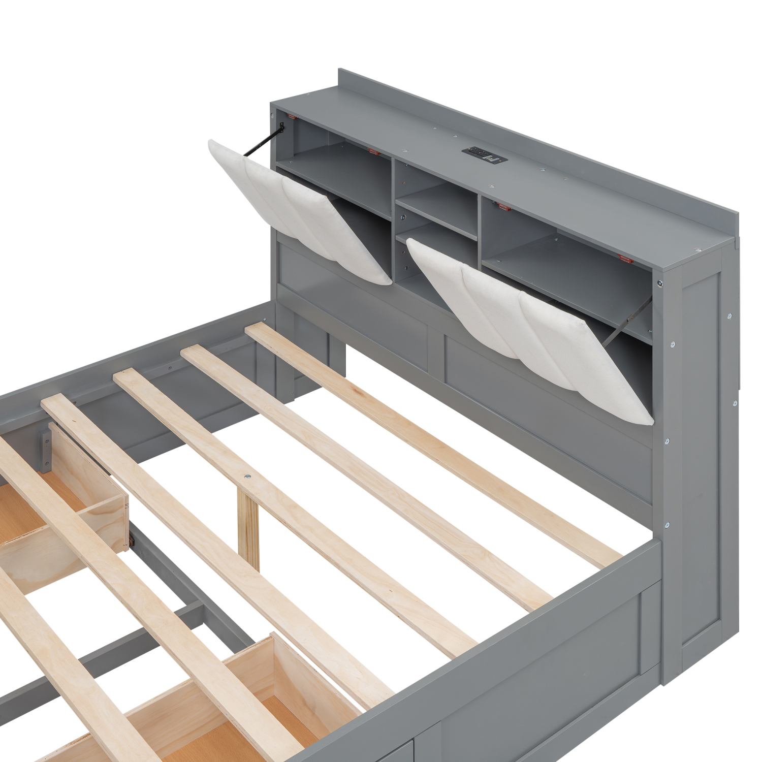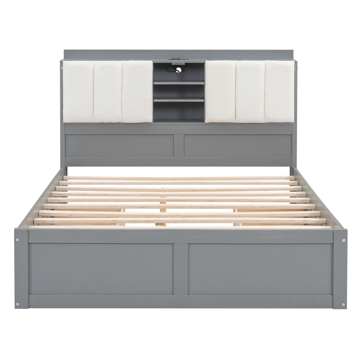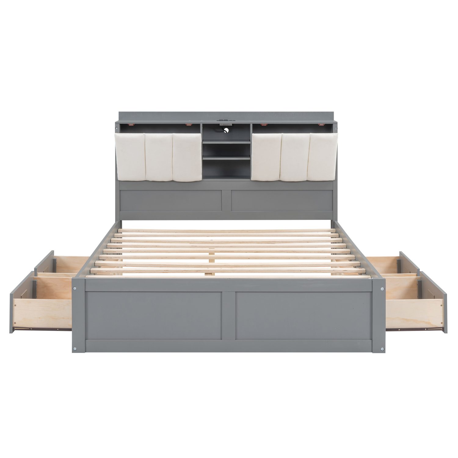 Churanty Full Size Platform Bed with Upholstered Storage Headboard and 4 Drawers, Wood Bed Frame with USB Charging Station, Gray - Curated Treasures Market