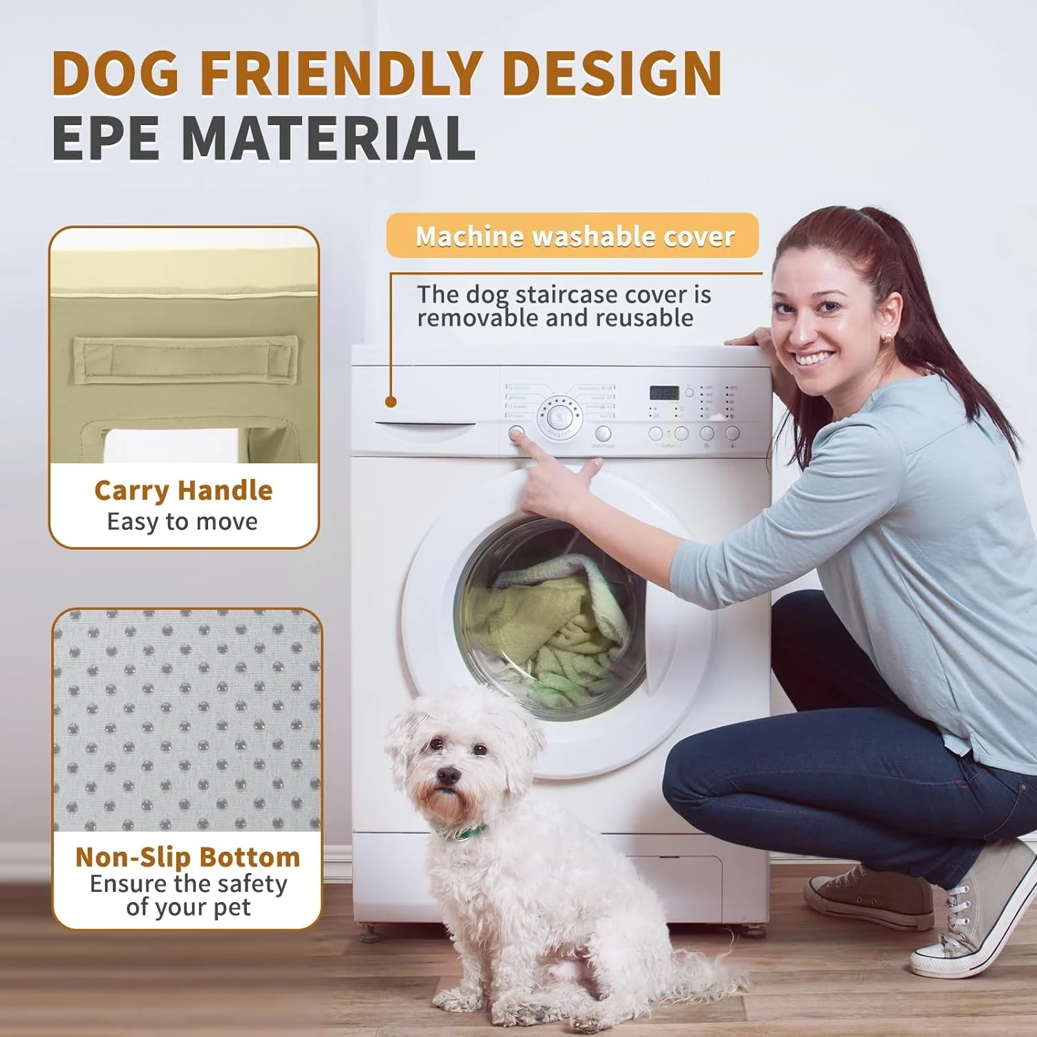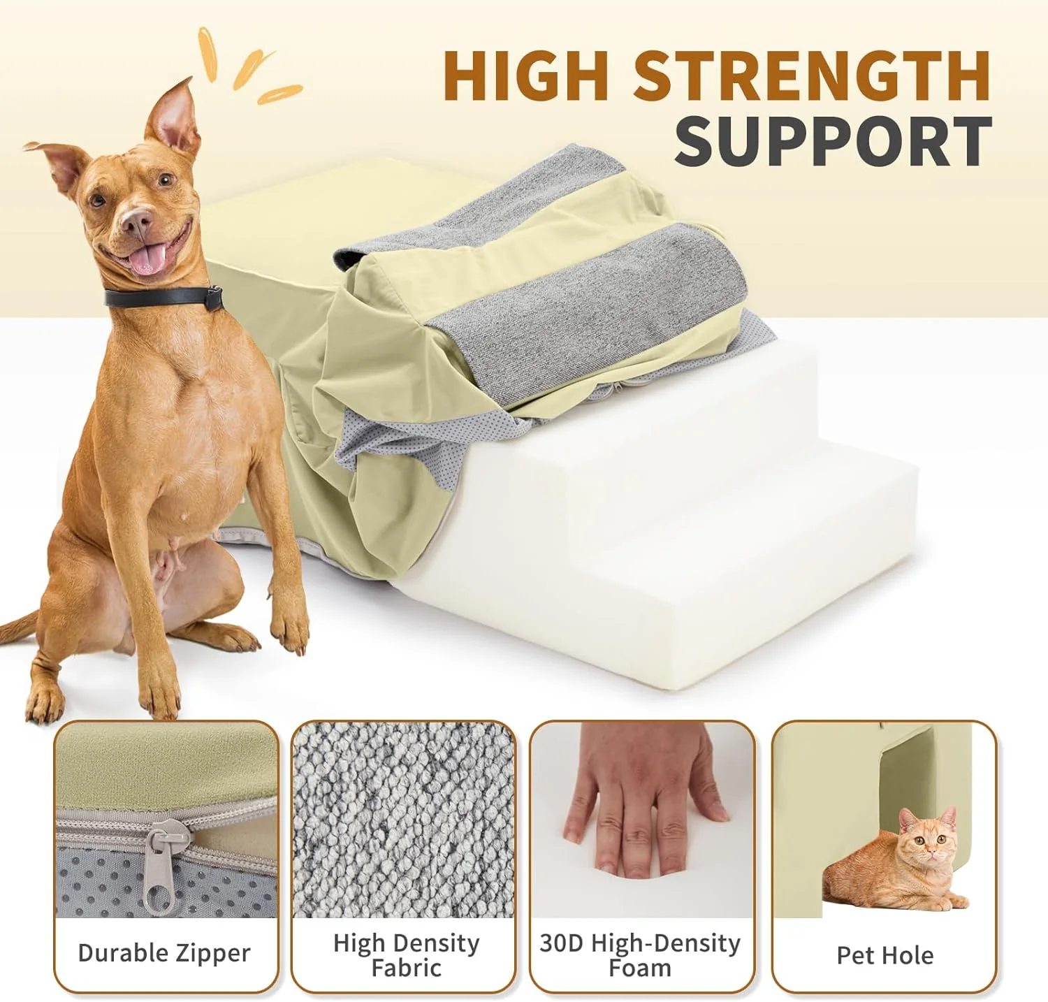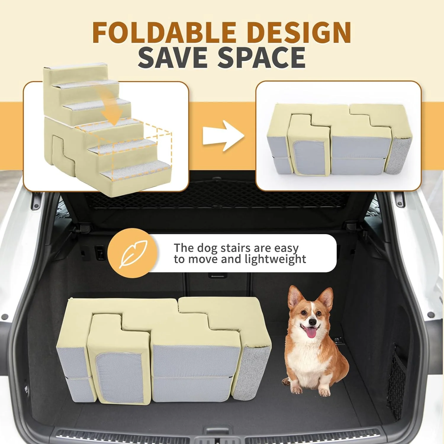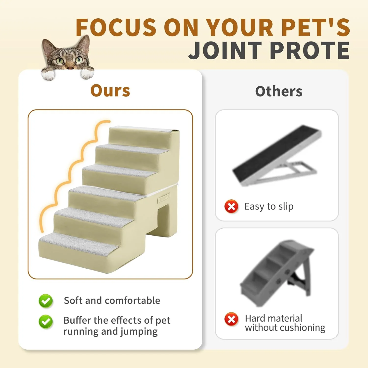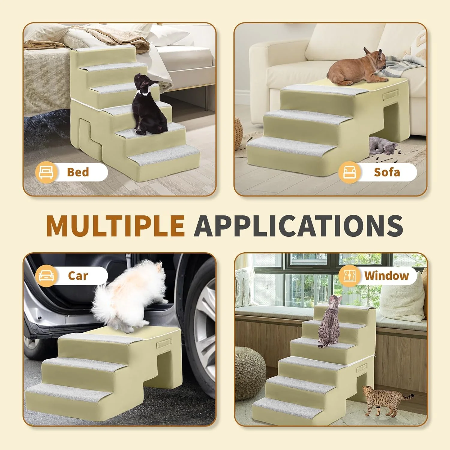 Dog Stairs, 28" Cuoote Dog Ramp for Small Dogs and Cats, Non-Slip Bottom Dog Steps for Beds and Couches, Pet Stairs for Medium Large Dogs with 30D High-Density Sponge, 2/3/6 Steps (Flannel Beige) - Curated Treasures Market