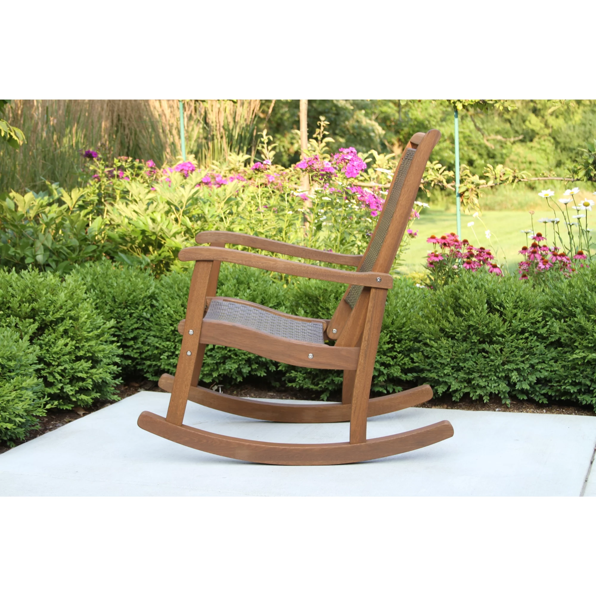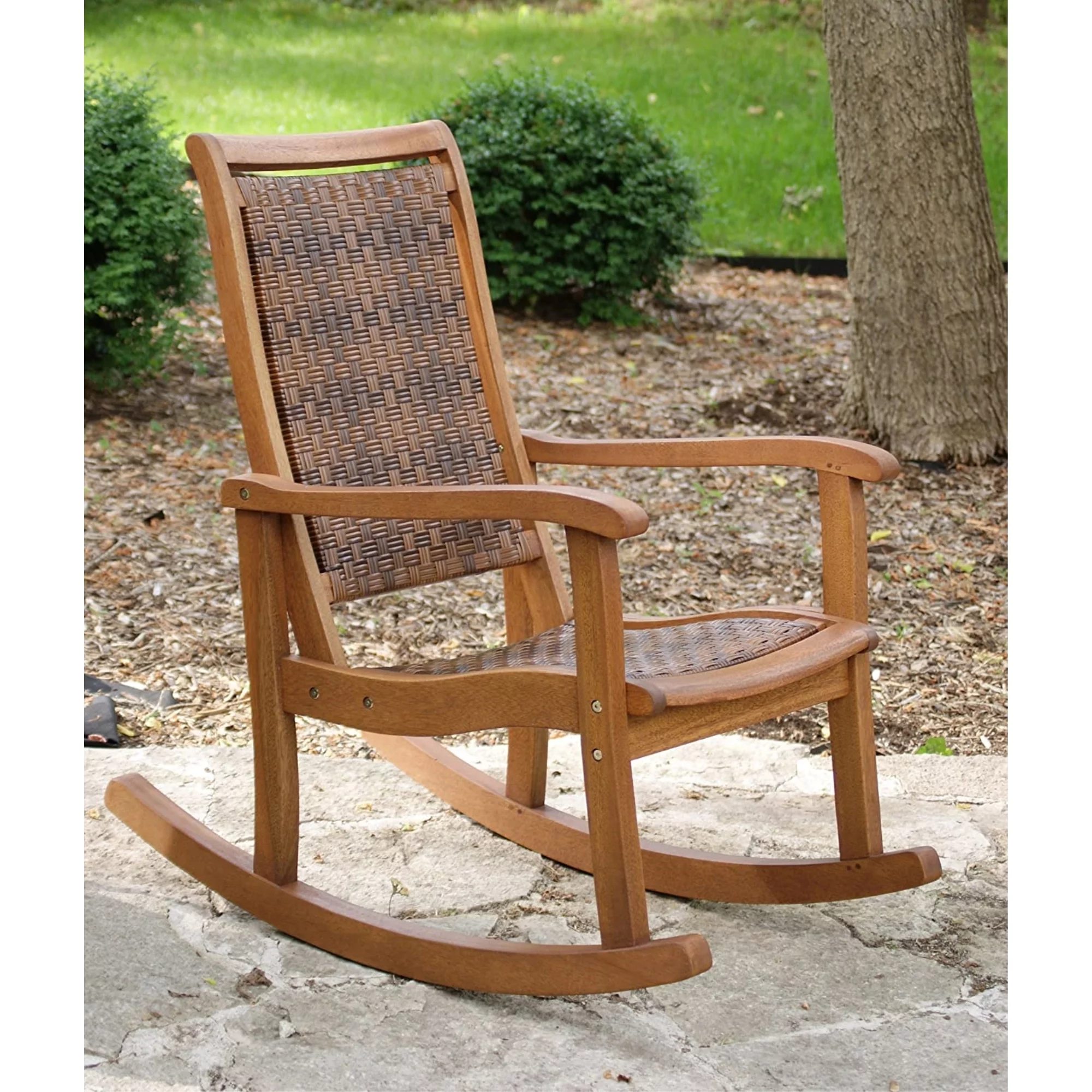 Outdoor Interiors All-Weather Breathable Wicker Eucalyptus Wood Rocking Chair for Decks, Patios, and Porches, Mocha Brown - Curated Treasures Market