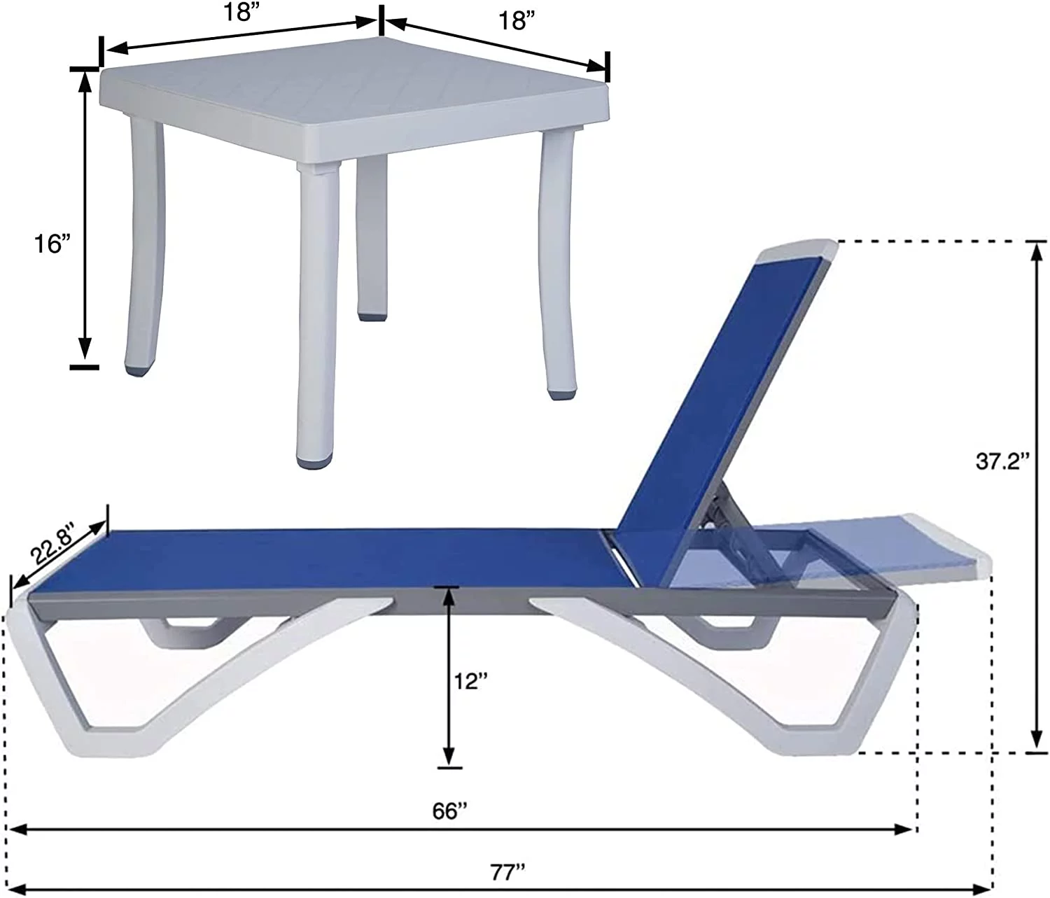 Patio Chaise Lounge Chair - Full Flat Alumium & Resin Legs, Outdoor Reclining Adjustable Chair for Sunbathing, Beach, Patio, Lounge Set or Patio Table - Curated Treasures Market