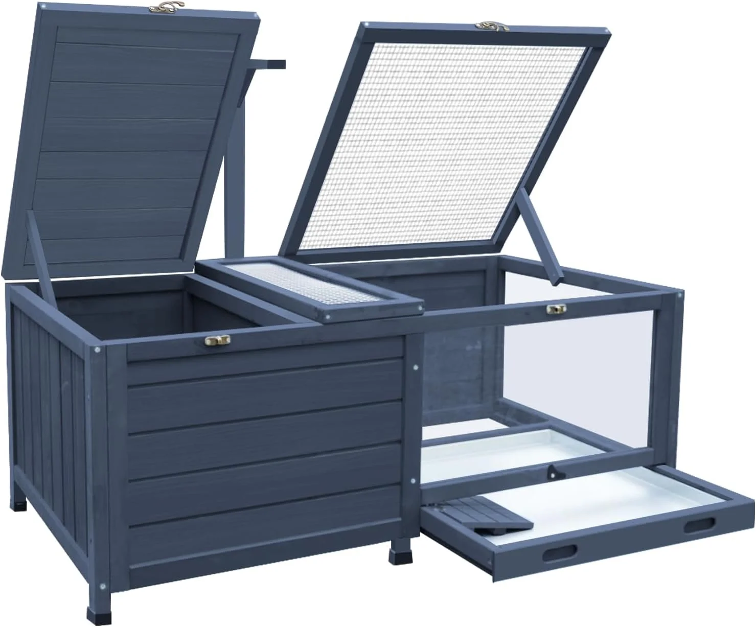 Tortoise Habitat Wooden Tortoise House, Indoor Turtle Enclosure Outdoor Reptile Cage with Removable Bottom,Openable Roof Activity Area and Removable Tray Lizard - Curated Treasures Market
