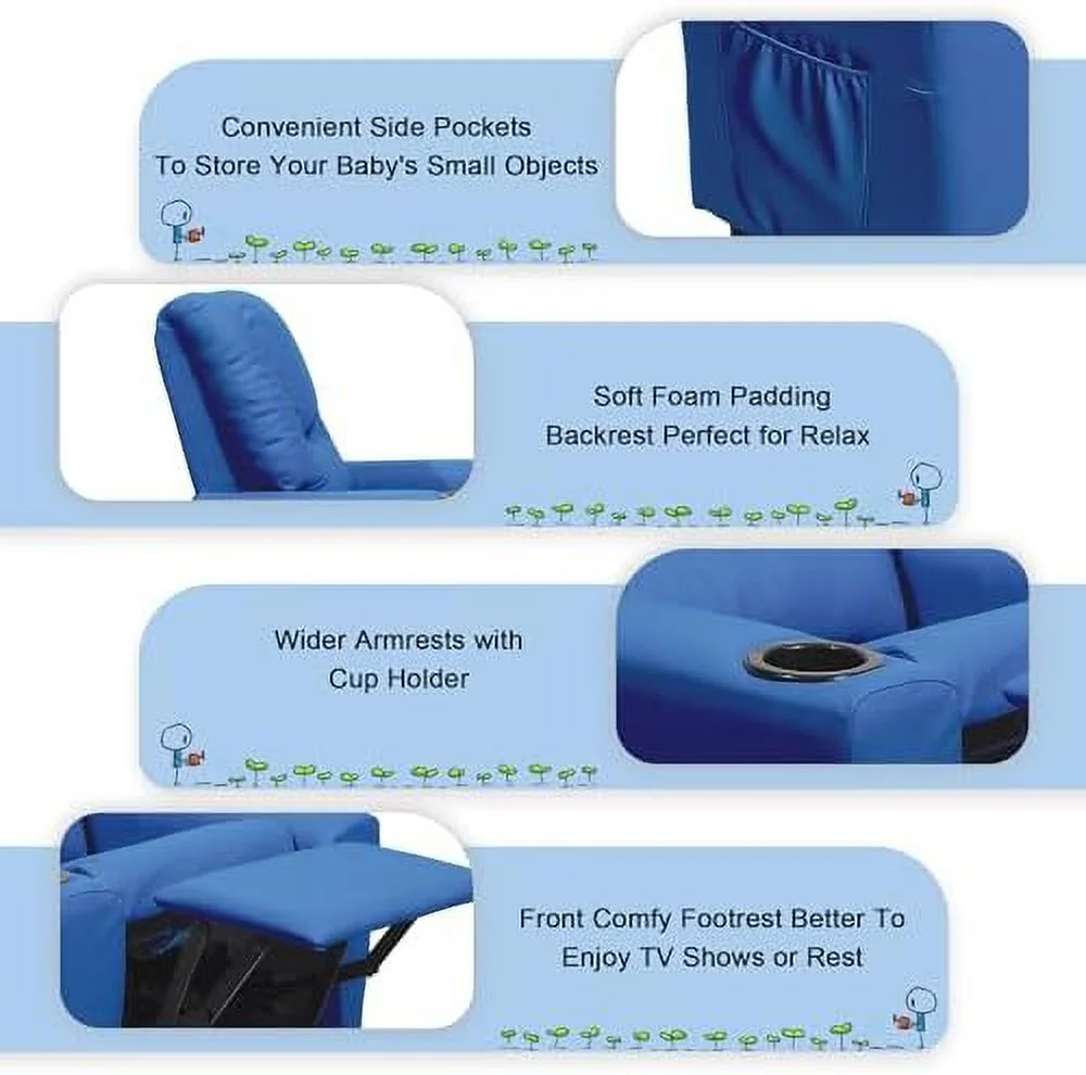 CHNJHUM Recliner Chair Toddler Recliners for Age 0-5 with Cup Holder Side Pockets and Non-Slip Footstool Small Recliner for Girls Boys Baby Bedrooms Children's Rooms - Curated Treasures Market