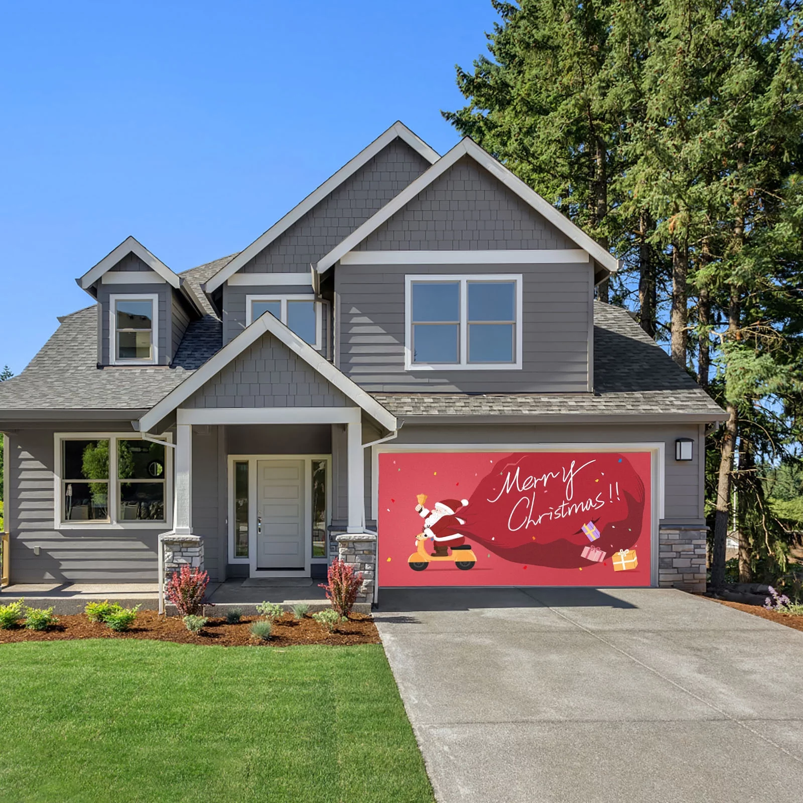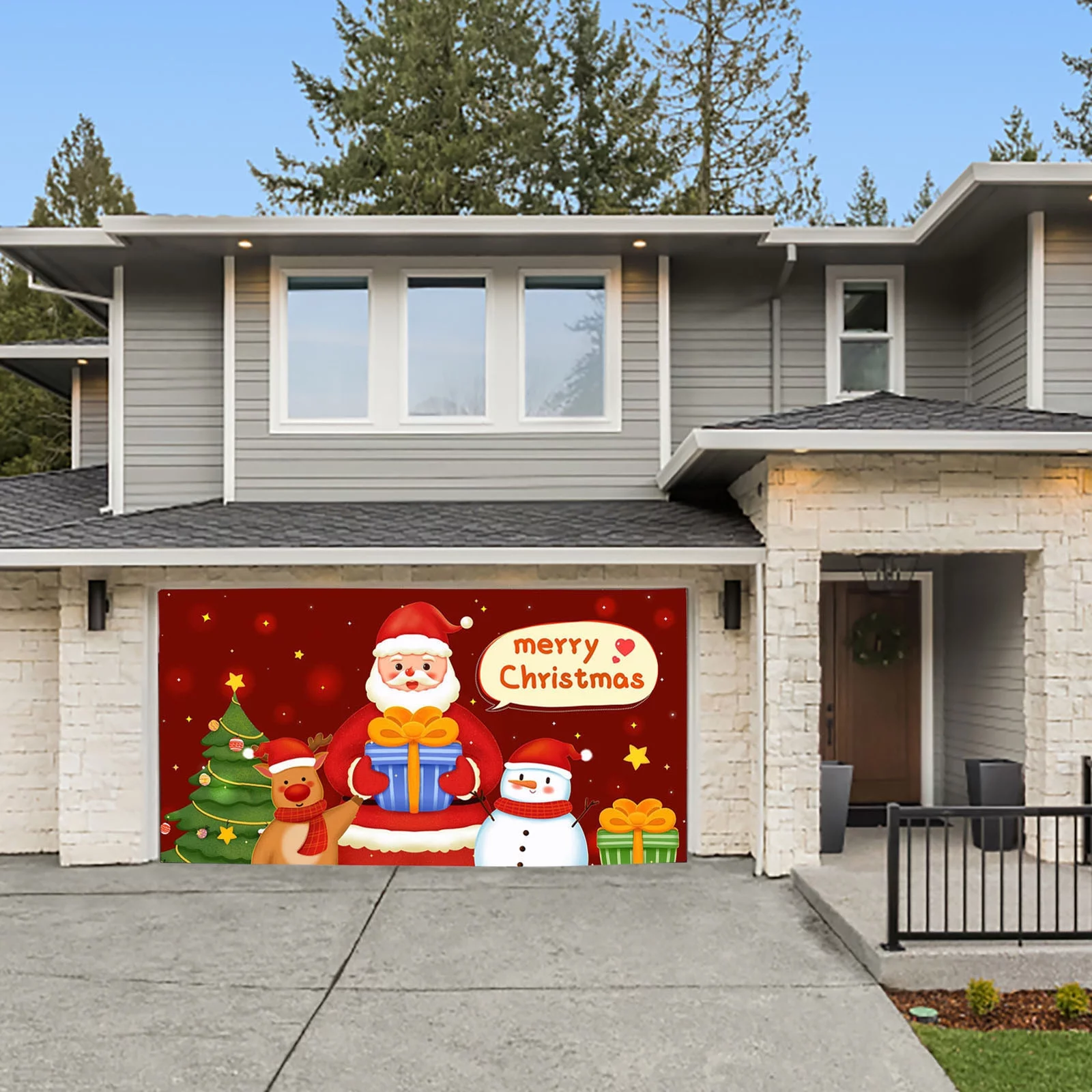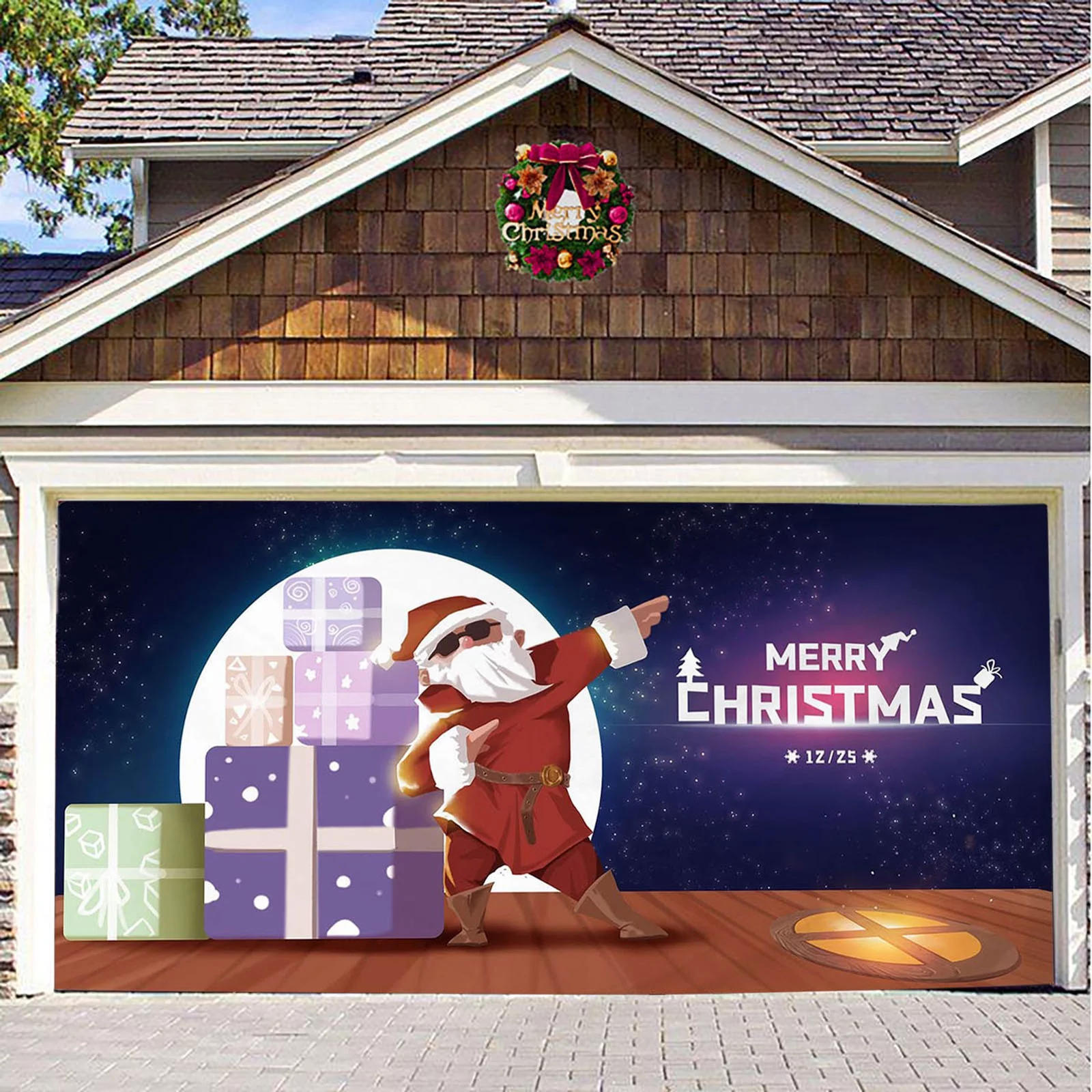 iju7gthy 4th of July Outdoor 7X16Ft Merry Christmas Holiday Banner Garage Door Mural Winter Santa Outdoor Large Gantry Decoration Indoor and Outdoor Christmas Holiday Decoration - Curated Treasures Market