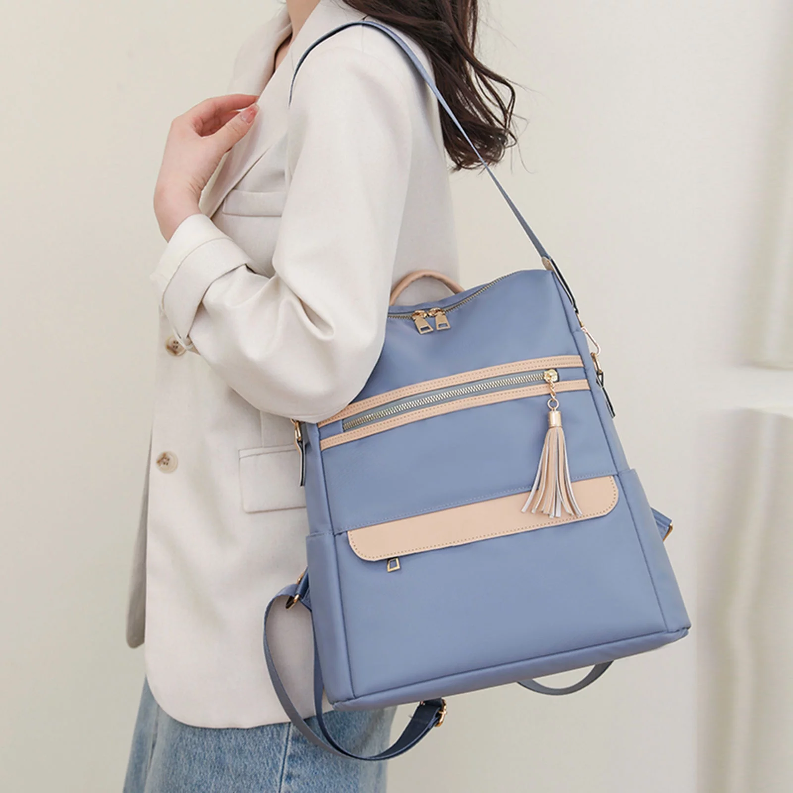 LUOGENLI Backpacks Bulk 24 Pack Ladies Fashion Colored Nylon Fabric Shoulder Bag with Double Zippers and Large Use Backpack Backpacks Bulk 18" Men Light Weight Backpacks for Travel - Curated Treasures Market