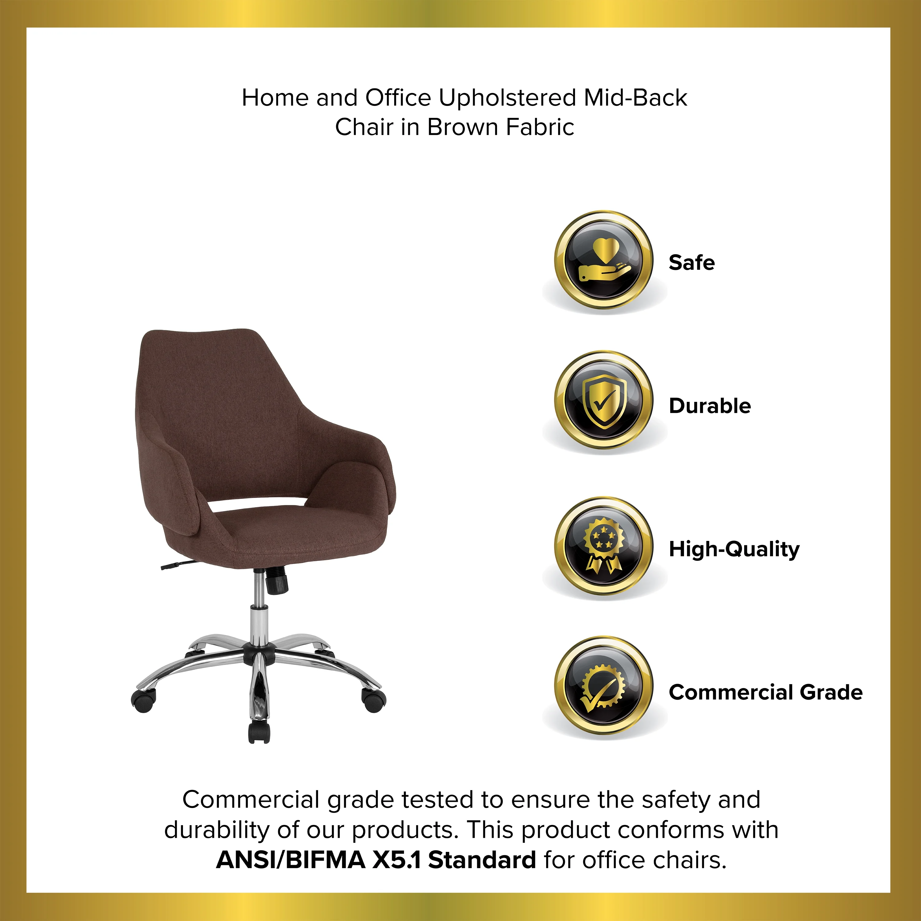 Merrick Lane Office Chair Ergonomic Executive Mid-Back Design In Contemporary Brown Fabric With 360° Swivel And Height Adjustment - Curated Treasures Market