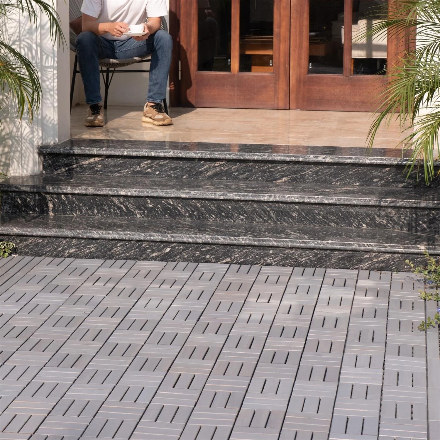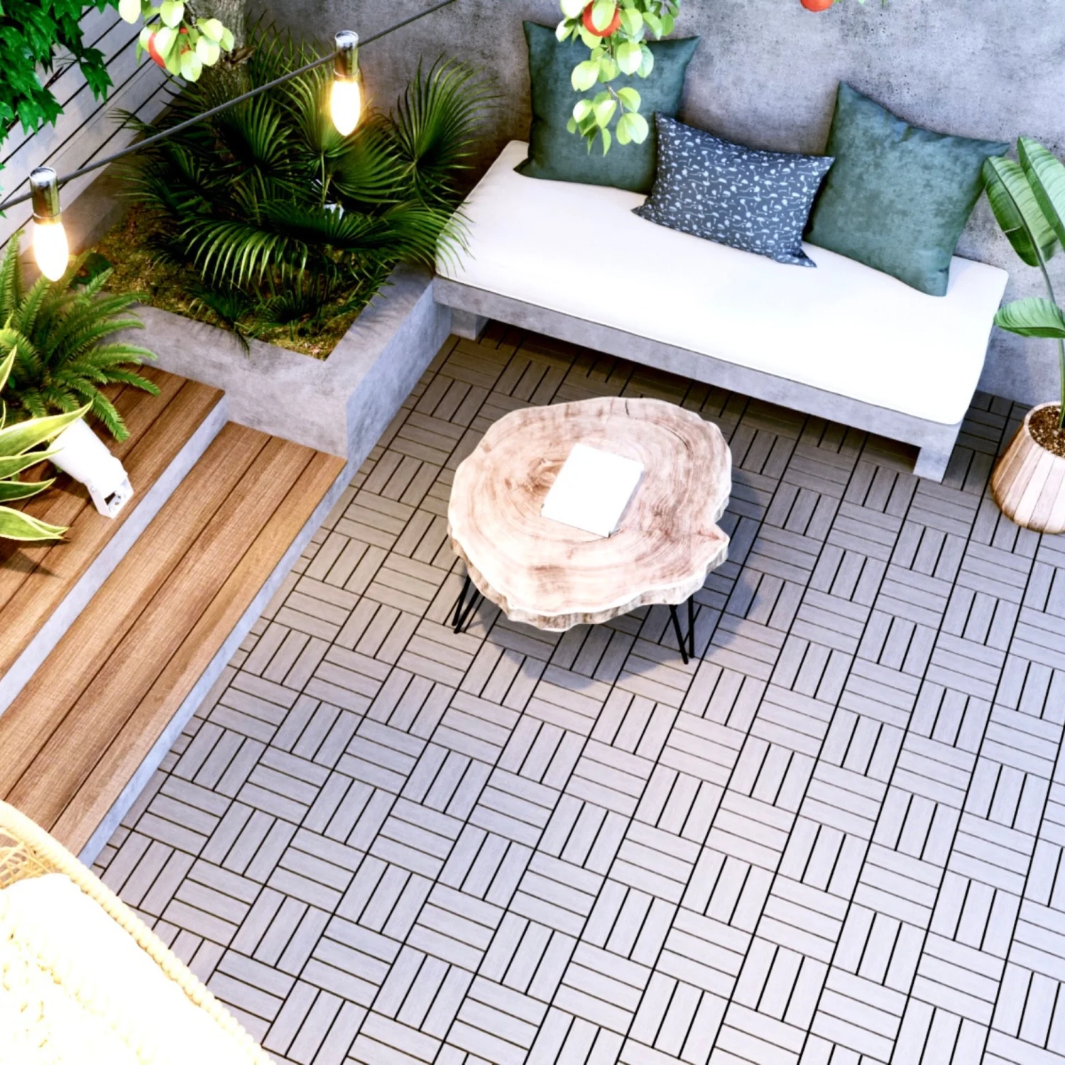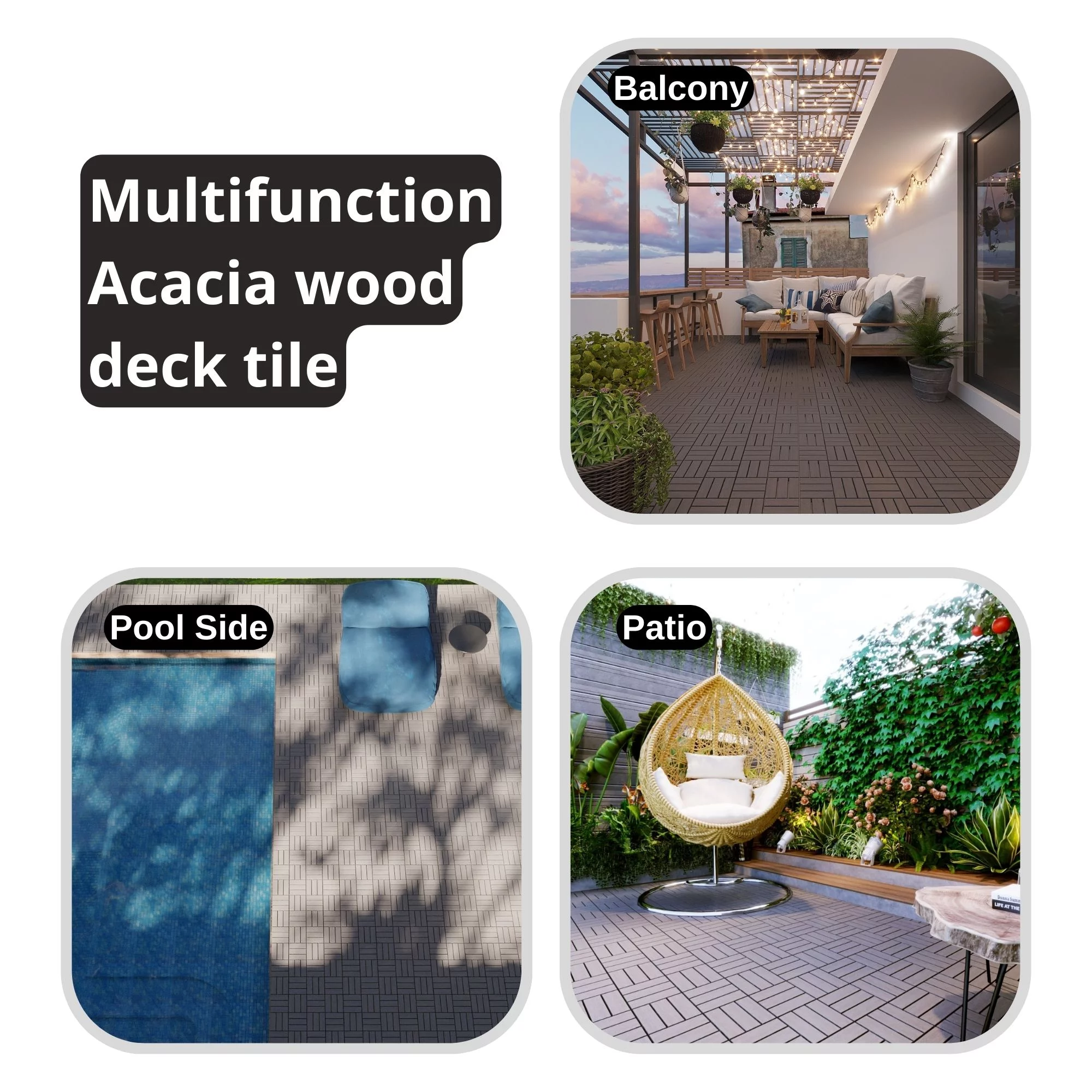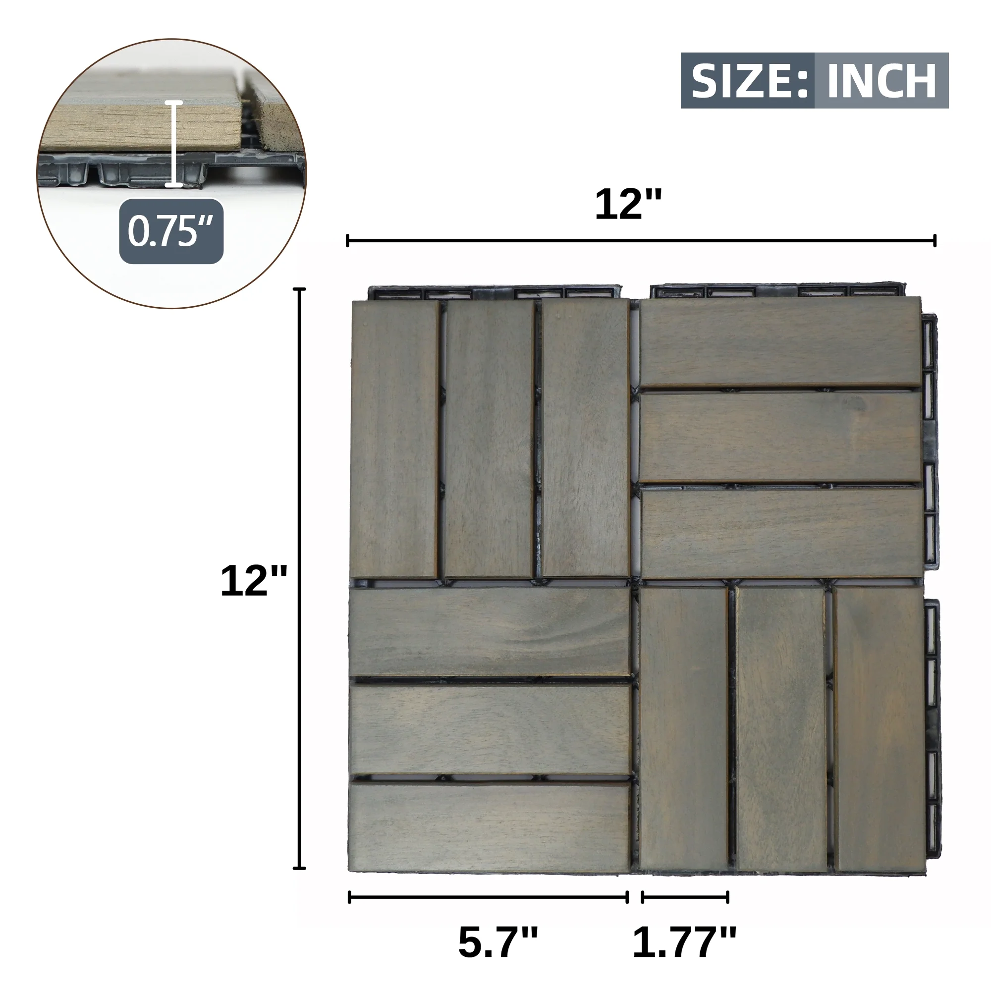 Ufurpie 10 PCS 12" x 12" Interlocking Deck Tiles Checker Pattern,Square Acacia Hardwood Outdoor Flooring for Patio,Bancony,Pool Side,Gray - Curated Treasures Market