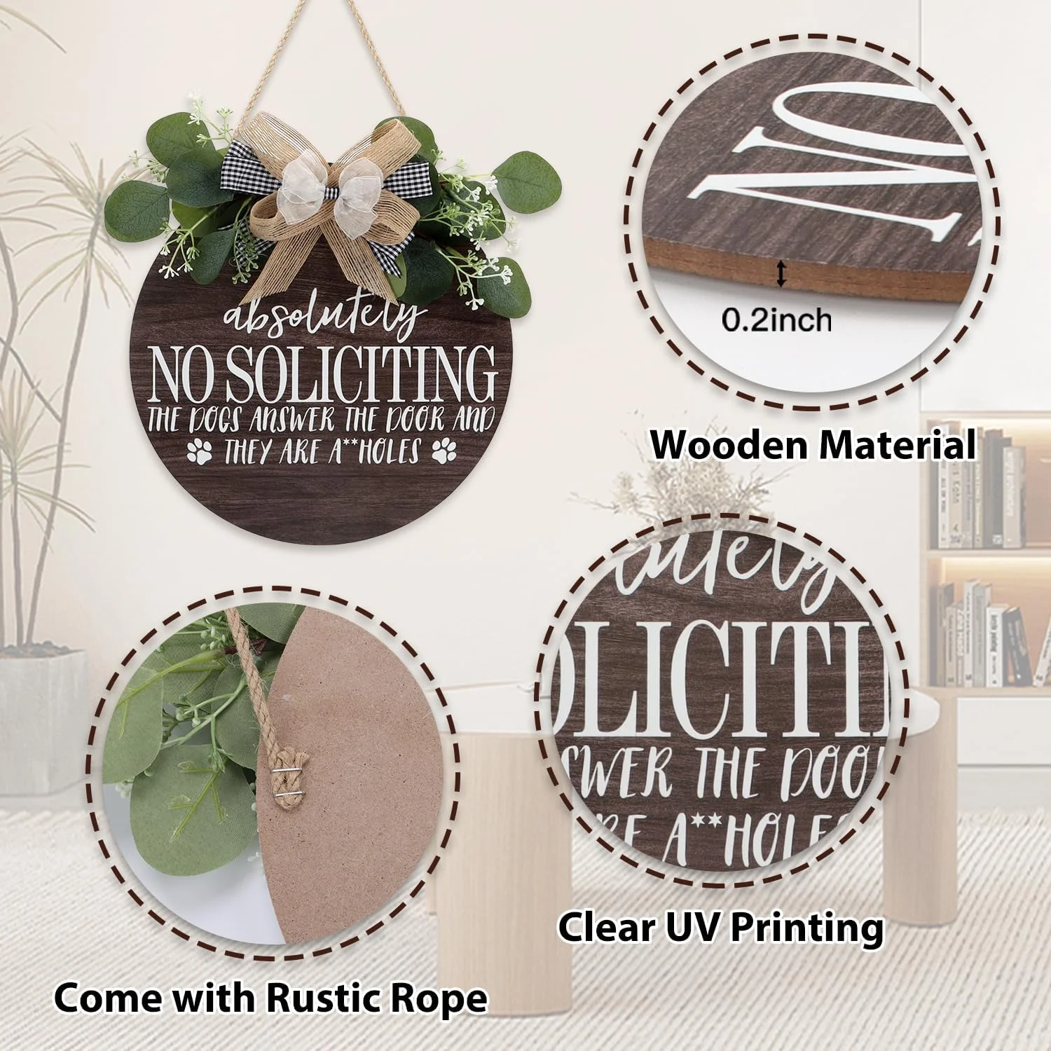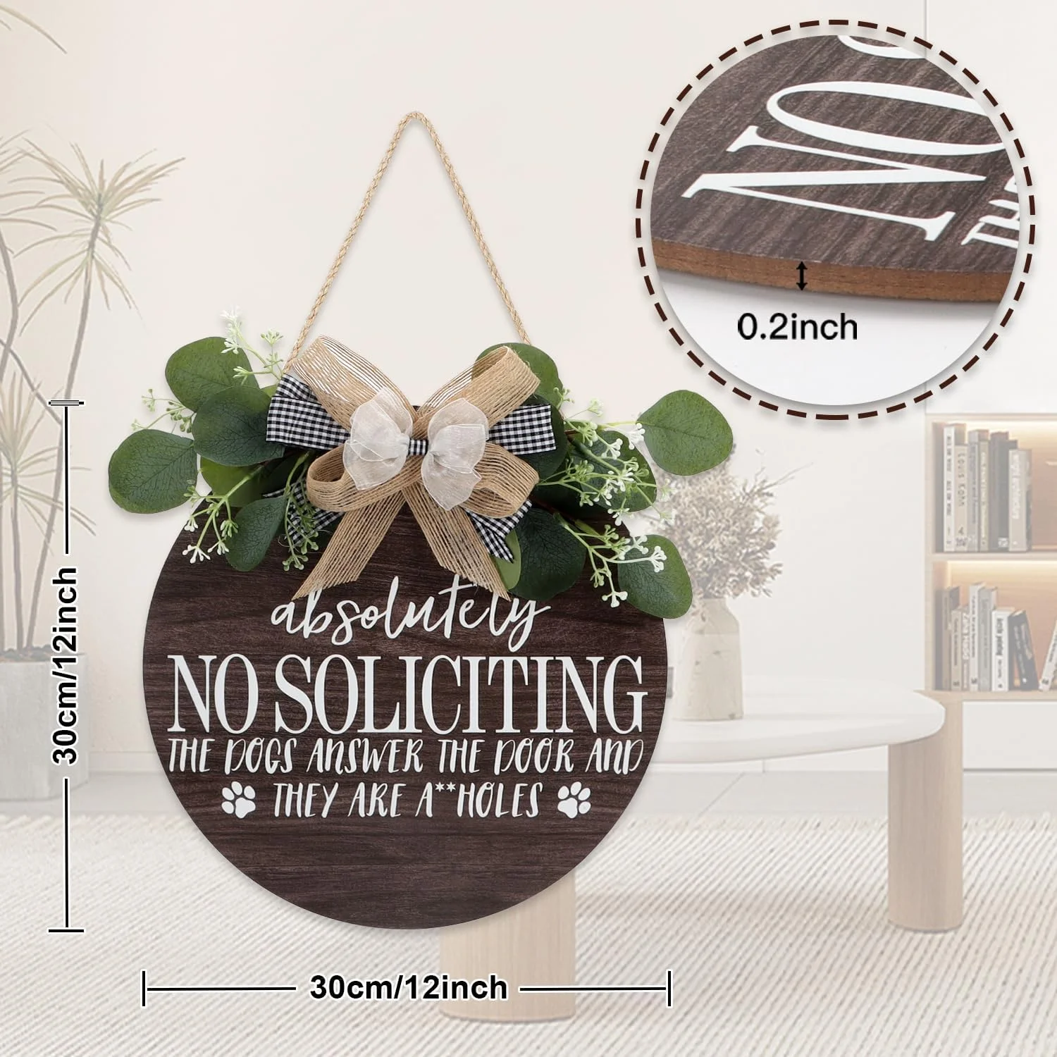 IARTTOP No Soliciting Sign for Home Decor Farmhouse Soliciting Porch Sign for Door Wall Decoration with Round Hanging Burly Wood Sign for House Outdoor Indoor Living Room Decoration - Curated Treasures Market