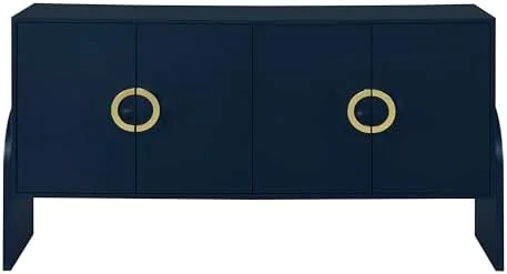 HBBOOMLIFE 61" Sideboard Buffet Cabinet with Four-Door Metal Handle Modern Accent Kitchen Console Table with Adjustable Shelves for Entryway Living Room Navy Blue - Curated Treasures Market