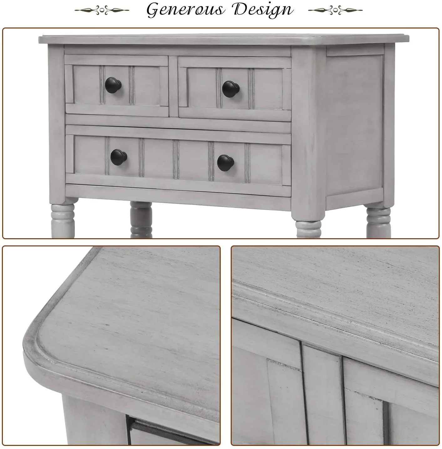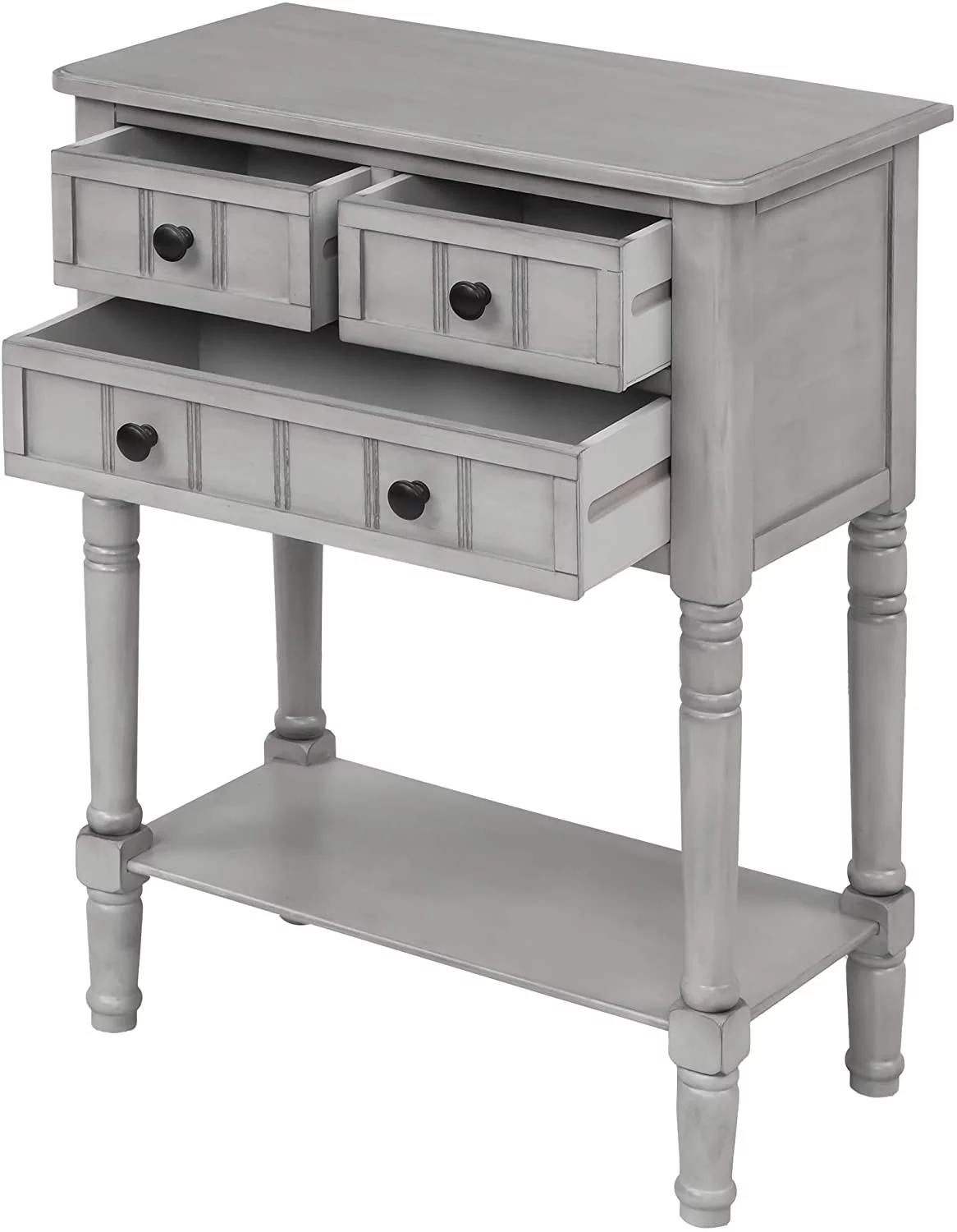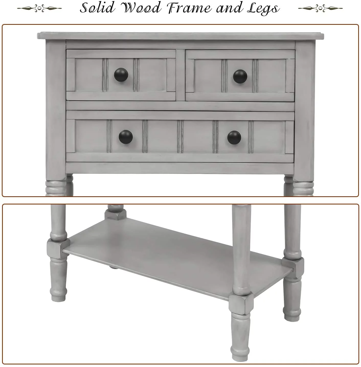 Narrow Console Table, Rustic Entryway Table Slim Sofa Table with Three Storage Drawers and Bottom Shelf, Wood Side Table for Living Room, Easy Assembly (Gray) - Curated Treasures Market