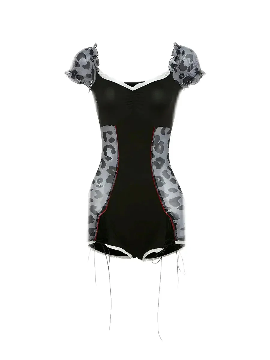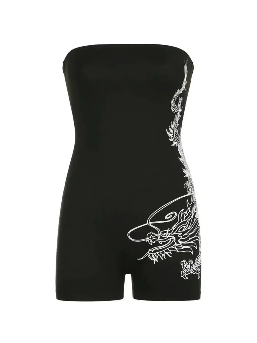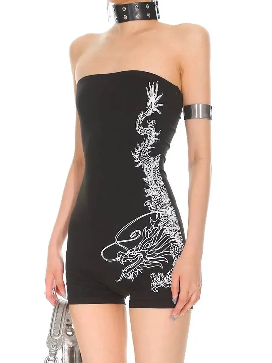 'Gisselle' Y2k Dragon Print Totem Bodysuit Shorts