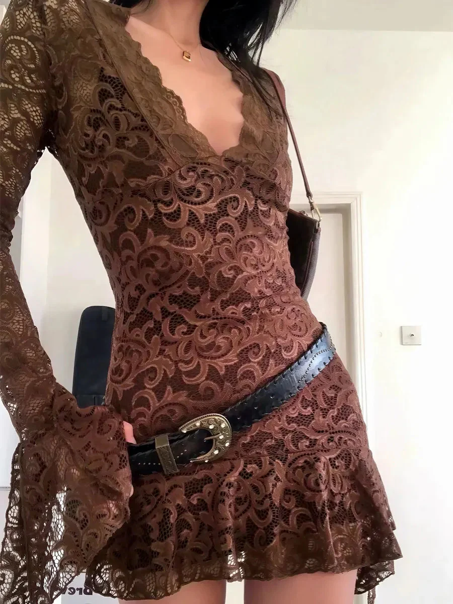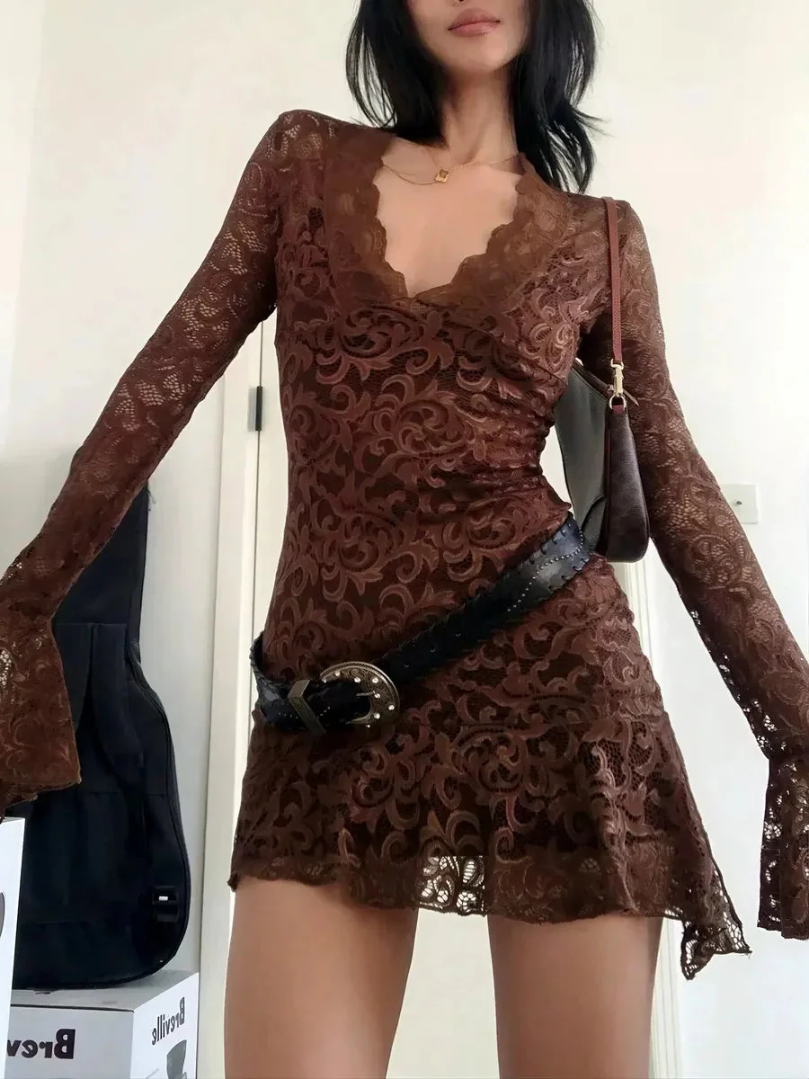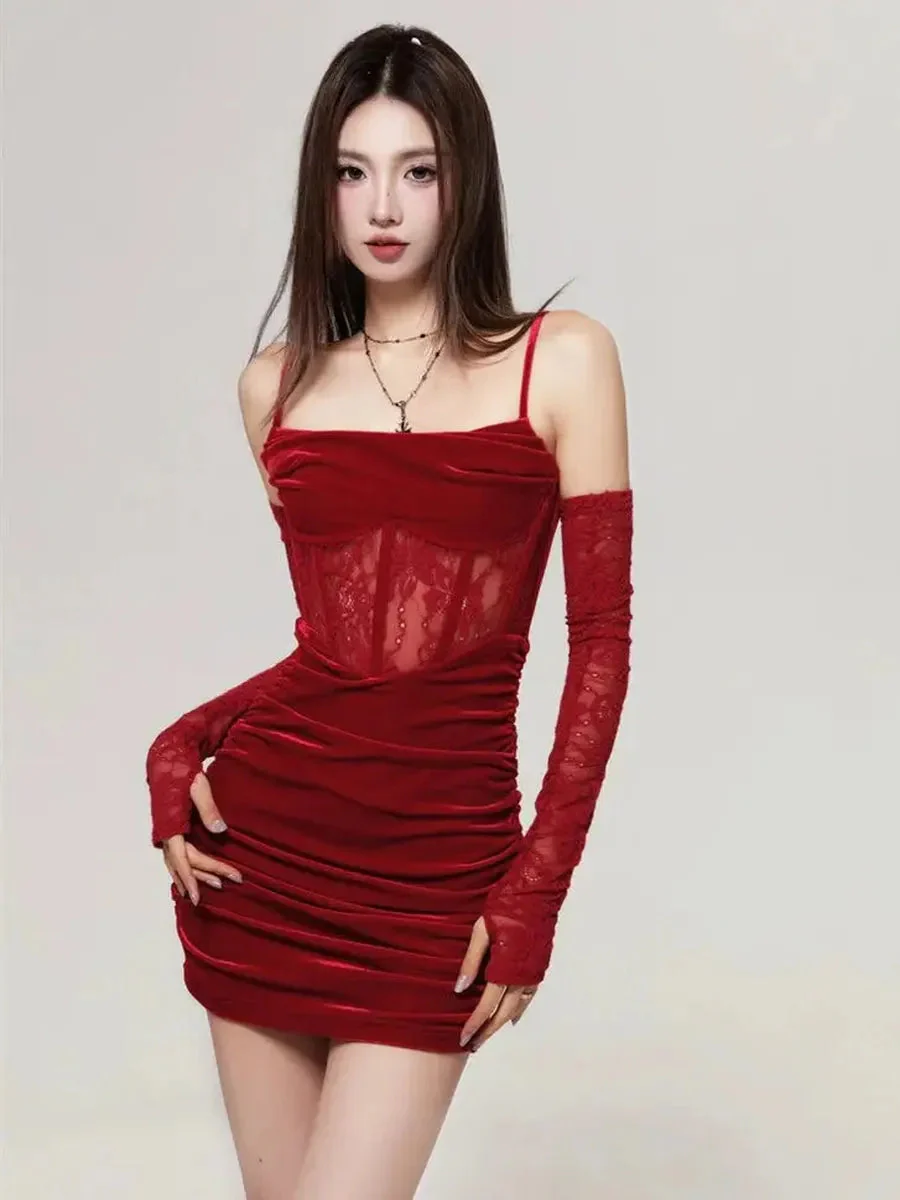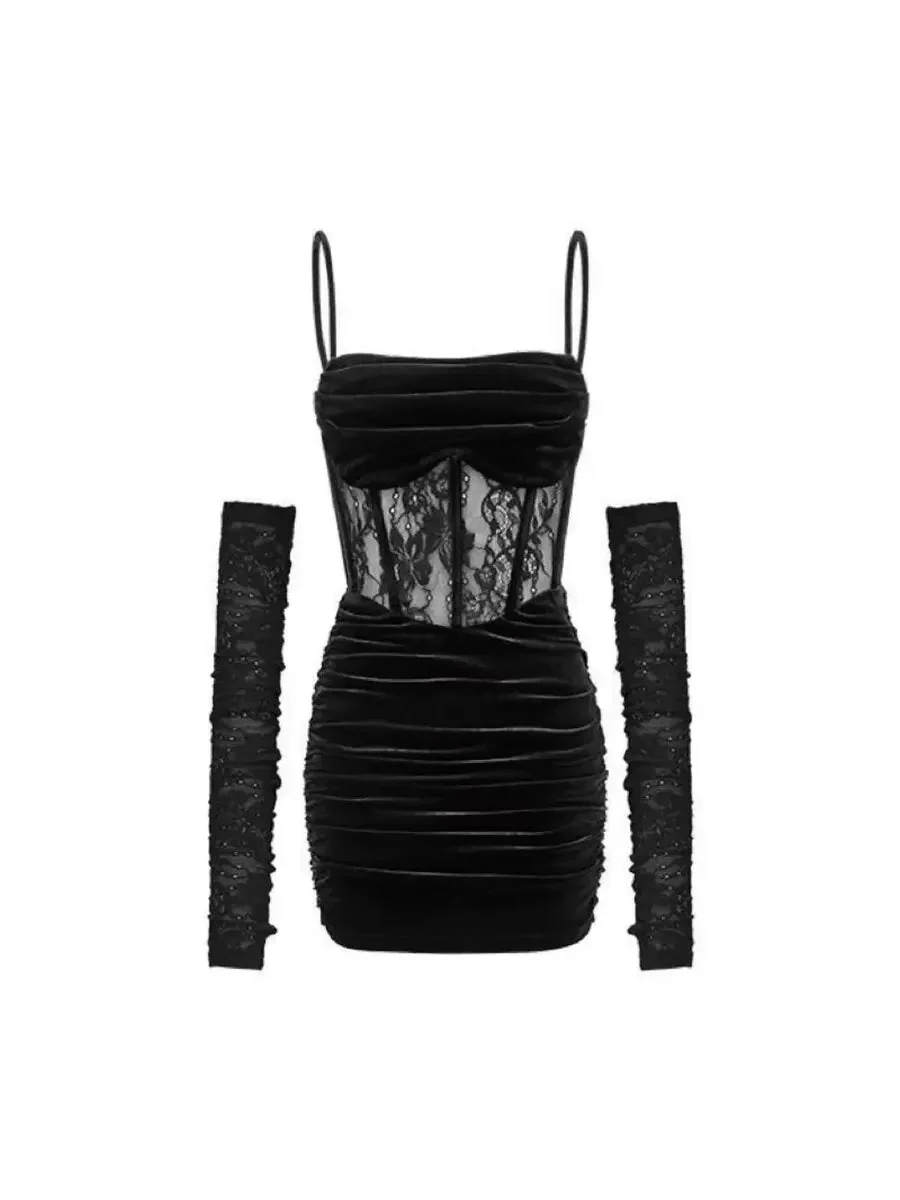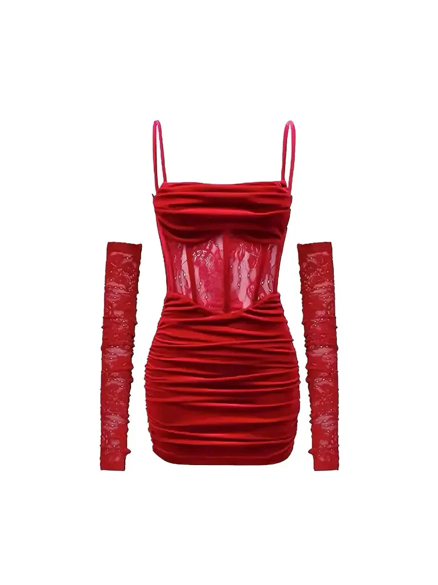 'Touch' Holiday Christmas Party Velvet Lace See Through Dress