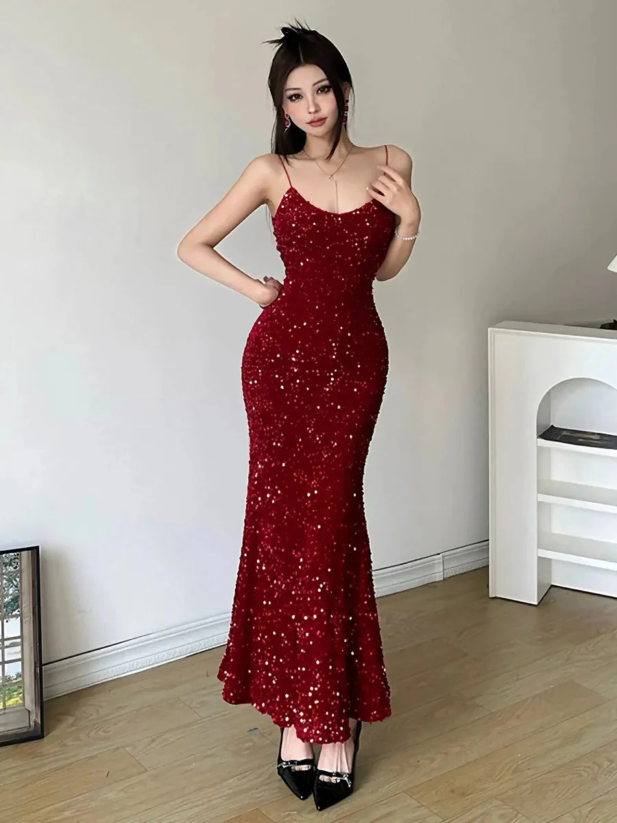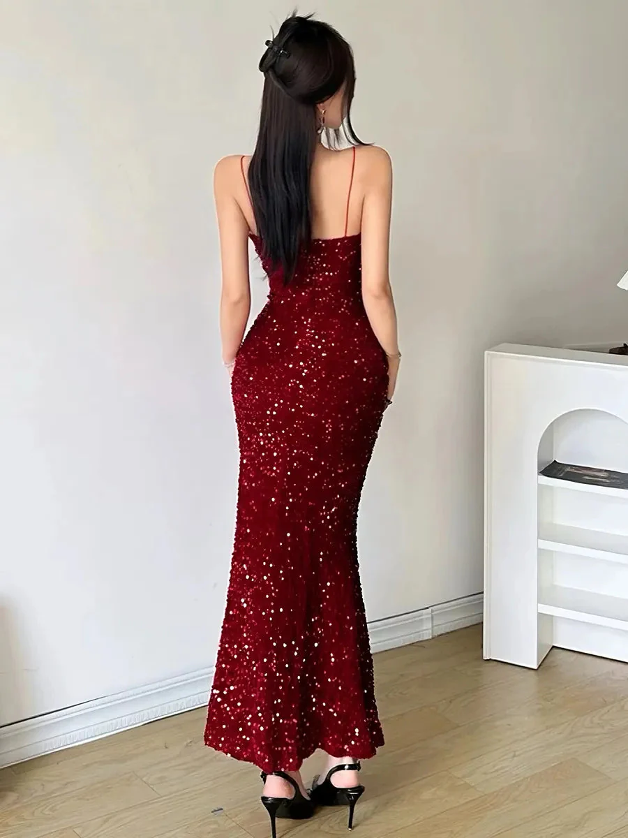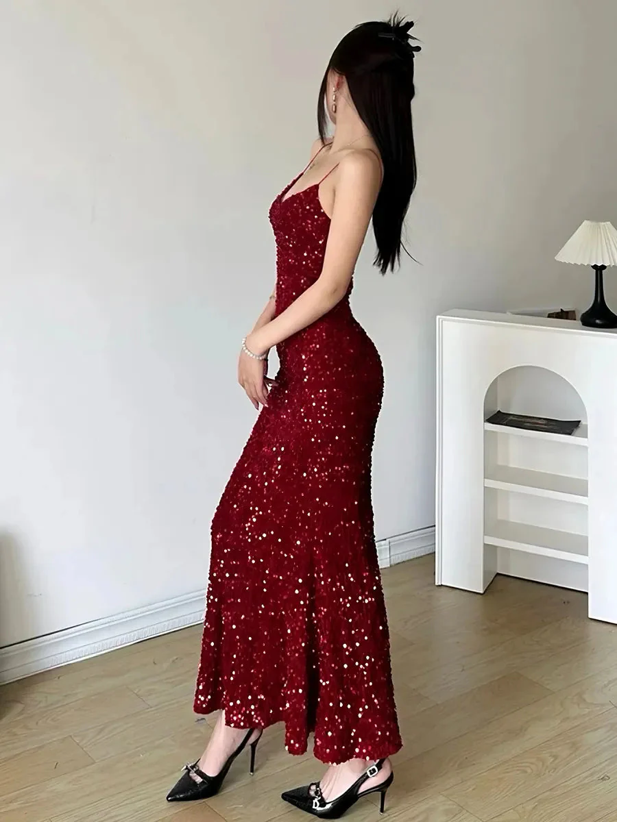 'Glow Night' Holiday Party Glittering V Neck Sheath Dress